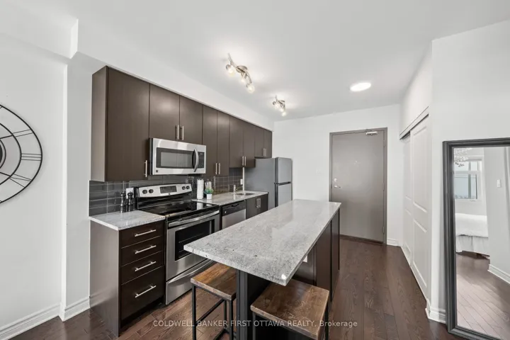+"PublicRemarks": "Condos with underground parking in Barrhaven DO exist!! This beautifully maintained 1 bed condo offers maintenance free living, UNDERGROUND parking, modern comforts, easy access to transit - and all with a view! This super bright unit features 9-foot ceilings, hardwood flooring, and a functional open-concept layout ideal for relaxing, working from home and entertaining. The kitchen showcases stainless steel appliances (with a new fridge!), tile backsplash, and an awesome centre island with a granite countertop - a great spot for a Zoom meeting, dinner or catching up over a coffee with a close friend. The generous cupboard and counter space work very well for your day to day storage and air fryer needs as well. The living room is a cozy spot for your next Netflix binge, or step out on the balcony and enjoy the view with no front neighbours. The spacious primary bedroom is complemented by in-unit stacked laundry and a stylish full bath with tiled shower and quartz vanity. Heated underground parking is included, and residents enjoy access to a well-equipped fitness room. With transit LITERALLY right outside the front door and proximity to all of Barrhaven's shops, restaurants, and scenic walking/cycling paths, this is an excellent opportunity for first time buyers, down sizers and investors!"