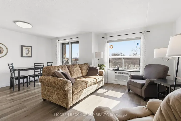 +"PublicRemarks": "Wake up to sweeping views of the St. Lawrence River and unwind each evening as ships pass by-welcome to Unit 703 at 3 Apple Street. This bright and well-maintained 2-bedroom condo offers a seamless open-concept layout connecting the living, dining, and kitchen areas, all filled with natural light. Step onto your private balcony and take in views of the river and nearby Hardy Park. An ever changing backdrop that makes this unit truly stand out. Thoughtfully updated throughout, the unit features a refreshed kitchen with breakfast bar seating, an updated bathroom with a new vanity, and in-suite laundry with a convenient washer/dryer combo. Additional updates include a hot water heater (2024), A/C wall unit (2025), updated light fixtures, fresh paint to main areas/baseboards, and new balcony flooring, allowing you to move in and enjoy without the stress of immediate upgrades. All renovations have been completed by Bendale approved contractors, offering added peace of mind and consistency with building standards. The building has also seen extensive improvements to common areas, mechanical systems, and exterior elements, reflecting strong management and long-term care. Residents enjoy access to a heated outdoor pool, gym, common room, and library, along with two elevators, an on site super, secure entry and controlled access for added comfort and security. Flexible parking options are available, with outdoor spaces currently rented at $45/month and indoor parking at $90/month. Lockers are also available for rent. Step outside and you're just moments from Brockville's waterfront, the Brock Trail, shopping, banking, cafés, and local events, offering a lifestyle that's both relaxed and connected. Whether you're downsizing, investing, or entering the market, this condo represents an ideal entry into waterfront living. Combining comfort, convenience, and a location that's hard to beat."