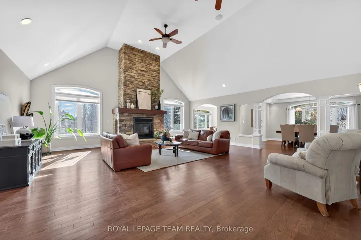 +"PublicRemarks": "WELCOME to 2 Beechgrove Gardens, an executive, majestic residence on a rare double lot in the heart of Stittsville. Beautifully landscaped front gardens & a charming brick walkway to the backyard create a warm, inviting setting for quiet mornings, evening strolls & outdoor living. Grand entrance opens to a sun-filled great room with soaring 16-ft ceilings & a striking brick fireplace anchoring the space. Offering nearly 6,000 sq ft of finished living space, this home blends comfort, function & timeless elegance. The kitchen features granite counters, S/S appliances, built-in oven & walkout to a deck overlooking the pool & backyard-ideal for summer dining & entertaining. Over $85,000 in recent updates include fully renovated primary bathroom, upgraded LED lighting & tasteful kitchen enhancements including backsplash, hardware, faucet & lighting. Main level offers a beautifully appointed primary suite with a bespoke renovated ensuite and grand walk-in closet, two well-appointed bedrooms with a Jack & Jill bath, an elegant formal dining room, a light-filled front-facing home office, and a thoughtfully designed laundry/mudroom. Finished walk-out lower level with 9-ft ceilings is ideal for entertaining & everyday living, featuring a wet bar, golf simulator, gym, flexible living spaces, 3-piece bath, 3-season room & workshop/mudroom with direct access to the backyard & pool. Built with a solid ICF foundation for energy efficiency. Fenced backyard is a private retreat with a saltwater inground pool, hot tub & irrigated landscaping-perfect for relaxing, hosting & creating lasting memories. Oversized triple garage with access to both levels including LL shop with high ceilings for storage or lifts. Close to top-rated schools, parks, trails, shopping & all Stittsville amenities. Masterfully designed home where luxury meets versatility, offering expansive spaces tailored for entertaining, wellness, work, and everyday living. Your luxury lifestyle starts here."