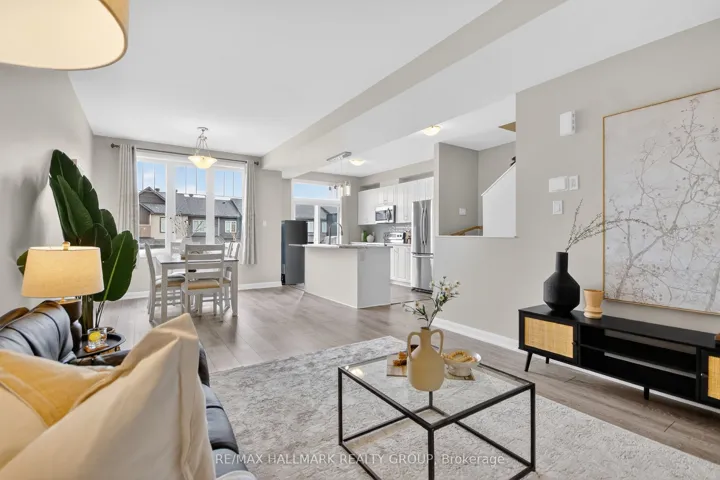 +"PublicRemarks": "MODERN DESIGN MEETS CONVENIENCE. Experience this sun filled, bright 3-storey freehold townhome by Minto, located in the wonderful Half Moon Bay community of Barrhaven. Built in 2020, this stylish home features a meticulously maintained layout that balances open-concept living with space for entertaining family and friends.The main level is defined by a spacious living and dining area where expansive windows invite an abundance of natural light across the beautiful laminate flooring. Overlooking this space is a modern kitchen finished with ceramic tile, stainless steel appliances, and ample cabinetry. Directly off the dining area, a large private balcony provides a seamless transition to outdoor living and entertaining.The third floor offers a spacious primary suite featuring a large walk-in closet, alongside a generous second bedroom and a full 3-piece bathroom. Located just minutes from schools and parks, with quick access to transit and the best of Half Moon Bay. This home is move-in-ready, modern and stylish in a prime location. Don't miss your opportunity at home ownership!"