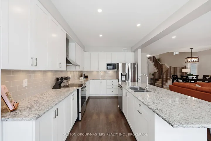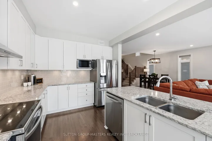 +"PublicRemarks": "Welcome to this meticulously maintained 5-year-old Sable model by Tamarack Homes, nestled in the sought-after Riverview community on the east side of the Limestone City. From the serene covered front porch to the generous entryway, this home impresses with its desirable open-concept layout, abundant natural light, and soaring 9-foot ceilings. The chef-inspired kitchen is a true highlight, featuring an oversized island with stone countertops, upgraded cabinetry with soft-close drawers, and a timeless subway tile backsplash. The inviting living room is anchored by a custom gas fireplace and flows seamlessly into the adjacent formal dining area - perfect for both everyday living and entertaining. Thoughtfully designed, the main level also offers a spacious mudroom with inside access to the attached double-car garage, along with a dedicated office tucked just beyond, complete with charming windows. Upstairs, the expansive primary suite boasts a walk-in closet and a stunning 5-piece ensuite with a soaker tub and separate shower. Three additional well-appointed bedrooms and a conveniently located laundry room with sink complete this level. The lower level is ready for your personal touch, offering elevated ceilings, large windows, and a bathroom rough-in. Recently painted throughout, the home continues to impress outdoors with a fully landscaped and fenced backyard, featuring a concrete patio and walkway-ideal for relaxing or entertaining. Perfectly situated with easy access to Hwy 401, CFB Kingston, schools, downtown, and a wide range of amenities, this exceptional home is ready to welcome its next owners. Come see it for yourself!"