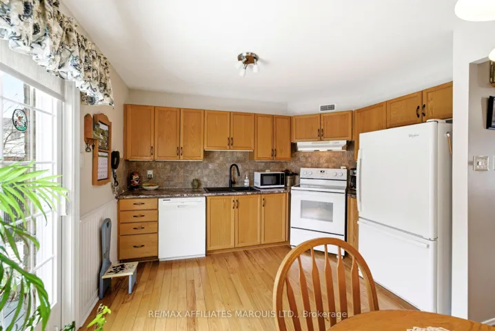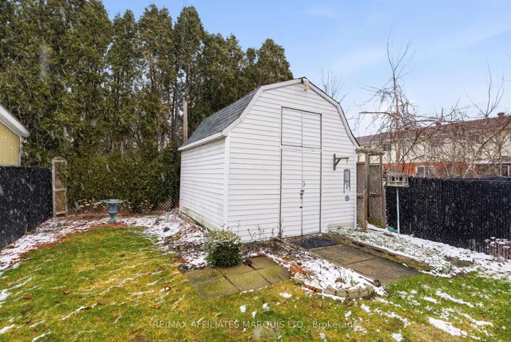 +"PublicRemarks": "An excellent opportunity for first-time buyers, this well-maintained end-unit townhouse offers comfort, functionality, and move-in ready living. With approximately 1,020 sq ft of space, this home is ideal for those looking to enter the real estate market and begin building equity. The main floor features hardwood flooring in the bright living room and continues into the kitchen, complete with a practical eat-in area. Patio doors from the kitchen lead directly to the back deck, creating a seamless connection between indoor and outdoor living. All appliances are included, making for an easy transition into your new home. Upstairs, you will find a generously sized primary bedroom along with two additional bedrooms, as well as a 4-piece bathroom. The layout is both practical and functional for a variety of lifestyles. The lower level adds additional living space with a finished rec room, ideal for relaxing, a play area or home office space. This level also includes a second 4-piece bathroom, a separate laundry room with washer and dryer included, and additional storage space. Outside, enjoy a private, fully fenced backyard featuring a spacious deck, privacy fencing, and a large garden shed. It is an ideal space for outdoor enjoyment. Located in a nice residential neighbourhood, this home is close to Terry Fox Memorial Park, Eamer's Corners Public School and offers easy access to Highway 401. A solid, move-in ready home in a family-friendly area, ready for its next owners. Click on the Multi-Media link for floor plan. The Seller requires 24 hour Irrevocable on all Offers."