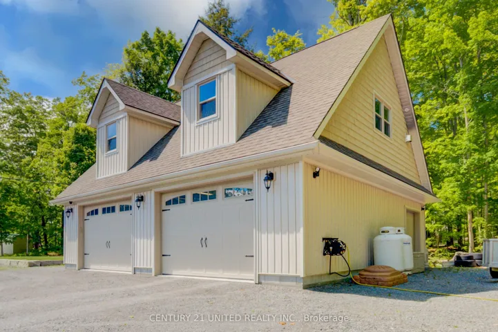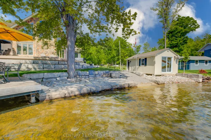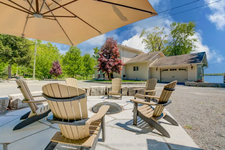 +"PublicRemarks": "This impressive home must be seen to be fully appreciated. If you've been searching for a stunning, year-round waterfront oasis just 1.5 hours from the GTA, your search ends here.Set in a private, serene setting, near the end of a quiet road, where neighbours respect the natural beauty and peaceful enjoyment of the area, this thoughtfully designed 13-year-old home was built by a legacy family who have cherished the lake since the 1950s.The residence offers four bright bedrooms and three well-appointed bathrooms, along with a gourmet island kitchen featuring granite countertops-perfect for entertaining. The open-concept design showcases breathtaking lake views, complemented by gleaming hardwood and travertine floors that flow gracefully throughout the home.The family room impresses with a soaring 24-foot ceiling and a dramatic wall of windows, capturing the coveted southwestern exposure and filling the space with natural light. Enjoy dining indoors overlooking the water, or step outside to the expansive Trex composite deck, complete with a Sun-Shade awning, integrated sound system, and low-voltage lighting-creating an ideal setting for effortless entertaining.The grounds are equally exceptional, featuring extensive armour stone, landscaping, and irrigation system, with a large fire pit finished with Bear Cut flagstone-perfect for gathering under the stars and creating lasting memories.Additional features include a custom Rainbow children's play centre and an impressive 36 x 32 ft two-storey, three-car heated garage. Above the garage, a beautifully finished games room or guest suite with a gas fireplace provides flexible living space. A second 24 x 32 ft detached 1.5-car garage is equipped with both propane and electric furnaces, along with 100-amp service, while the home also offers an attached single-car drive-through garage.Near the boat launch, a 24 x 12 ft dry boathouse-finished and heated-offers the perfect space for a studio or peaceful meditation retreat."