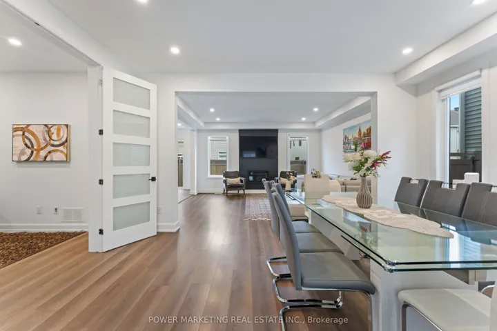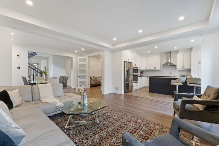 +"PublicRemarks": "Experience modern living in the heart of Half Moon Bay at 159 Celestial Grove, a stunning 4+1 bedroom, 3.5 bath home offering style, space, and convenience. The main level features an open-concept living and dining room with 9ft smooth ceilings on both floors, laminate flooring throughout, and an upgraded gas fireplace with a designer backsplash. The upgraded two-toned kitchen impresses with stainless steel appliances, a cooktop with built-in oven, and extended cabinetry. This level also includes a main-floor den, custom decorative ceiling, abundant pot lights, and a hardwood staircase (to both the second level and basement) finished with elegant iron spindles. The second floor offers four spacious bedrooms, upgraded extra-tall doors with black hinges/handles, and laminate flooring throughout. The primary suite includes an oversized walk-in closet and a luxurious 5-piece ensuite with a glass shower. A large second-floor laundry room adds everyday convenience. The fully finished basement provides incredible flexibility with a full bath, kitchenette, living area, and a fifth bedroom-perfect for an in-law suite. The backyard is fully fenced and private, and the home is footsteps from the local pond, schools, transit, parks, and the new Food Basics plaza, making this the ideal family-friendly location."