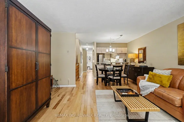 +"PublicRemarks": "Meticulously maintained by original owner! Welcome to this bright 2 bed, 2 bath lower unit. Gorgeous hardwood and cork floors on the main level. Spacious entryway with powder room. Kitchen offers ample cupboard space and stainless steel appliances with functional breakfast bar open to living/dining room combination. Back deck was recently updated by the condo. Lower level features 2 large bedrooms, 4 piece bath, laundry and plenty of storage space! Rarely offered private landscaped front garden for you to enjoy. Water is included in condo fee. 1 parking spot is in front of the unit. Make this house your home!"