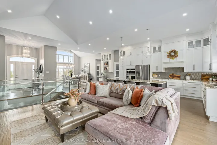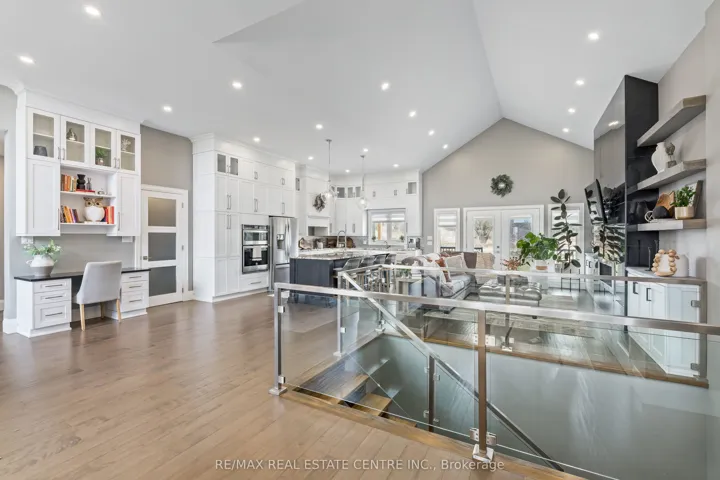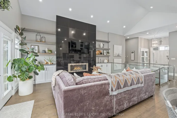 +"PublicRemarks": "Nestled on a stunning 1.137 acres, this distinguished bungalow presents over 4,000 square feet of beautifully finished space, showcasing superior craftsmanship and exquisite finishes. Upon entering, you will be captivated by the open-concept that unveils a breathtaking vaulted ceiling illuminated by designer pot lights that create an atmosphere of refined elegance. The grand, chef-inspired kitchen is adorned with exquisite cabinetry, a statement centre island with breakfast bar, luxurious granite countertops and a suite of premium appliances. The walk-in pantry is an extension of the kitchen and provides ample storage for dry goods, small appliances and kitchen essentials. The great room is a beautifully designed space that blends warmth with sophistication. A dramatic floor-to-ceiling fireplace serves as the focal point, while custom built-in cabinetry and floating shelves are perfect for curated décor and everyday living. The dining room is defined by its soaring vaulted ceiling and expansive windows that flood the room with natural light. Three generously appointed bedrooms offer unrivaled space with sophisticated blackout blinds for ultimate comfort. The elegant primary suite features a lavish ensuite with indulgent heated flooring and spacious walk-in closet. A generously sized office has been gracefully transformed into a private ladies' dressing suite. The lower level elevates the home's sense of refined versatility, revealing an additional bedroom, a family room designed for relaxation and a full bath. The rear exterior unveils a beautiful covered porch with ambient pot lighting - an intimate setting perfect to savour your morning coffee or indulge in an evening glass of wine. A heated triple car garage is thoughtfully designed to accommodate a vehicle lift. Gracefully set on a private, serene parcel, 9677 Tenth Sideroad is a rare offering where timeless elegance meets modern enhancements, all enveloped in a tranquil setting!"
