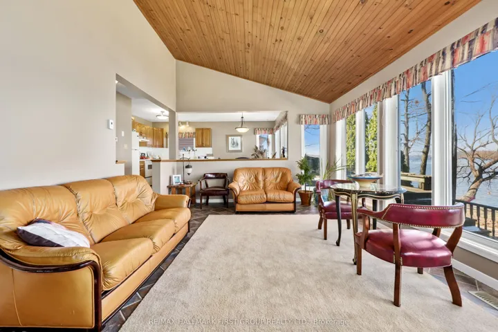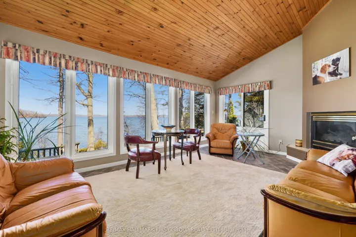 +"PublicRemarks": "Set along the picturesque shores of Rice Lake, this waterfront property offers a private setting surrounded by mature trees with beautiful, unobstructed views of the water and year-round recreational enjoyment. A true nature lover's paradise, the property is rich with wildlife, where regular sightings of turtles basking along the shoreline and blue herons gliding across the lake add to the sense of serenity and connection to the outdoors. The main living space is thoughtfully designed to capture the natural beauty of its surroundings, featuring a large living room with a stunning wall of windows overlooking the lake, a vaulted pine-clad ceiling, and a cozy fireplace that adds warmth and character. The space flows seamlessly into the open-concept kitchen and dining area, complete with a peninsula prep counter, matching appliances, wood cabinetry, and a tile backsplash. The dining area opens to the spacious deck, perfect for summer entertaining and lakeside gatherings. A bright main-floor family room provides additional living space, while a guest bathroom and a convenient laundry room complete this level. Upstairs, two well-appointed bedrooms, a full bathroom, and a versatile office or reading nook offer comfortable accommodations with peaceful, treed and water views. The lower level extends the living space with a large rec room, workshop/utility area, and an additional guest bedroom, ideal for hosting family and friends. Outdoors, the expansive deck is perfectly positioned to take in the serene surroundings, offering a private retreat for relaxing, entertaining, and fully embracing refined waterfront living on Rice Lake."