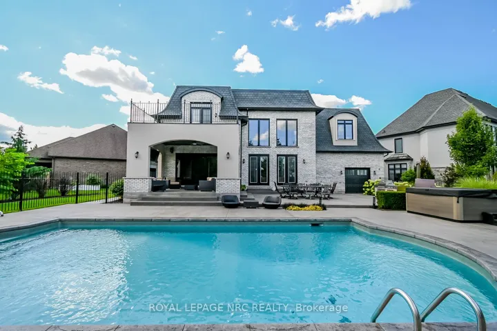 +"PublicRemarks": "Welcome to this stunning custom-built two-story residence, offering over 6,000 sq. ft. of finished living space in the heart of wine country. This exceptional property blends timeless craftsmanship with modern luxury, creating a true masterpiece for refined living and entertaining. Step inside through the grand entry and be captivated by the 10-foot ceilings on both the main and second levels, accented with 8-foot doors and exquisite custom decorative mouldings. The 22-foot family room ceilings create an airy, impressive atmosphere, complemented by expansive windows that flood the space with natural light. At the heart of the home is a chef-inspired kitchen featuring professional-grade appliances, custom cabinetry, a large center island with seating, quartz countertops, a spacious walk-in pantry, and a butlers pantry for added convenience and storage. Designed with both function and style in mind, this space is perfect for everyday living and large gatherings.The home offers four spacious bedrooms and 4.5 baths, including a luxurious primary suite with spa-like ensuite.Finishes include hardwood floors and porcelain tiles throughout, enhancing both elegance and durability.Designed for hosting, the home boasts two fireplaces one indoors for cozy evenings and another outdoors for gatherings. The custom bar and finished basement provide a stylish entertainment hub, complete with a private theatre room for the ultimate cinematic experience.Step outside to your own backyard oasis featuring a large pool, hot tub, covered deck, fire pit area, and a full irrigation system, making outdoor living as effortless as it is enjoyable."