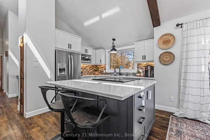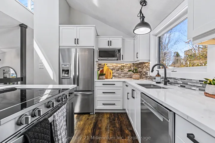 +"PublicRemarks": "Tucked away on a quiet street in a sought after Markdale neighbourhood, this meticulously maintained home offers a unique layout, bright living spaces, and comfortable indoor and outdoor living. The main level features an open-concept kitchen, dining, and living area designed for everyday living and easy entertaining. The kitchen includes a large island and modern finishes, while generous windows fill the space with natural light. The living room is enhanced by a vaulted ceiling that adds openness and character to the main living area. From the dining area, step out to the spacious back deck overlooking the backyard, an ideal setting for outdoor dining, relaxing evenings, or gathering with family and friends.The main floor includes three bedrooms, including a primary bedroom with walkout access to a private balcony, providing a peaceful spot to enjoy your morning coffee or unwind at the end of the day. The lower level offers additional living space with a cozy family room featuring a gas stove, a versatile fourth bedroom or office, an updated bathroom, and a laundry area. Interior access to the attached garage and additional storage space adds convenience to daily living.Outside, the property features attractive landscaping, a generous yard, and inviting outdoor spaces to enjoy throughout the seasons. Additional highlights include an updated kitchen, updated bathrooms, metal roof, owned water softener, a newer ductless heat pump for efficient heating and cooling, a single attached garage with EV charging capability, and a concrete driveway with parking for multiple vehicles.Located within walking distance to shops and everyday amenities, and close to local trails, golf, and hospital services, this home offers comfortable living in the heart of Markdale."