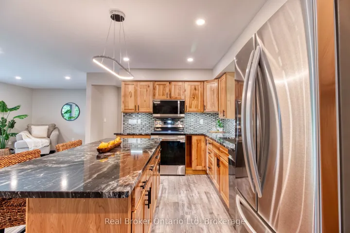 +"PublicRemarks": "Thoughtfully reimagined for effortless main-floor living, this home delivers a refined blend of style, comfort, and intention. The open-concept layout moves with ease, anchored by a sleek quartz kitchen that invites connection-whether it's slow mornings, lively evenings, or everything in between. Every detail has been curated to feel elevated yet livable, creating a space that doesn't just look good-it feels right. Step outside to a private, tranquil setting where a soft water feature sets the mood, while the hydro-serviced shop offers the flexibility to create, build, or escape into your own projects. Positioned just moments from scenic trails, boutique shops, and the shores of Georgian Bay, this is more than a place to live-it's a lifestyle defined by simplicity, sophistication, and quiet confidence."