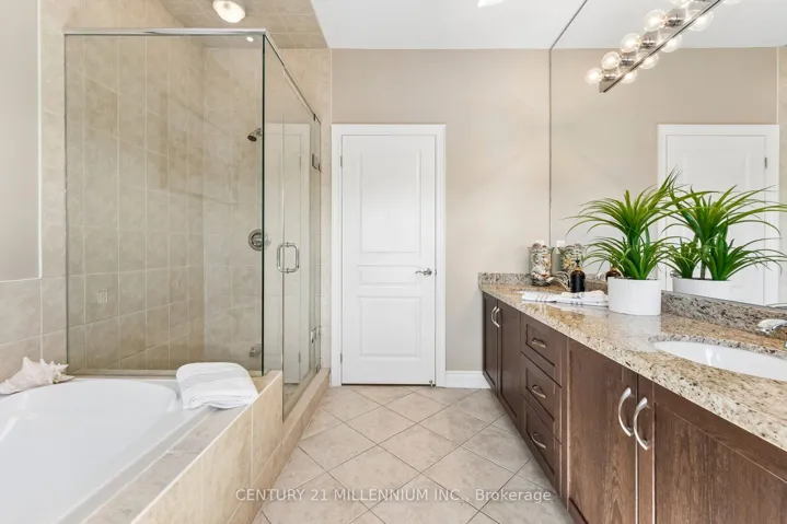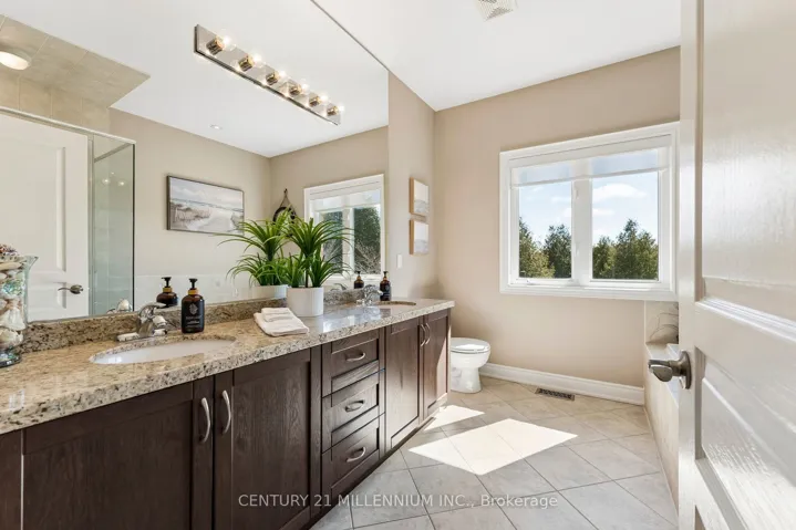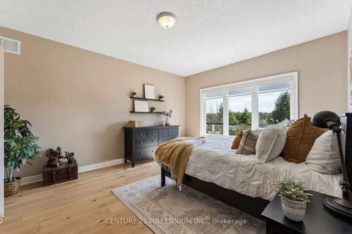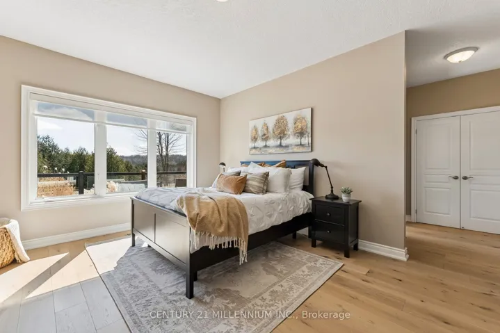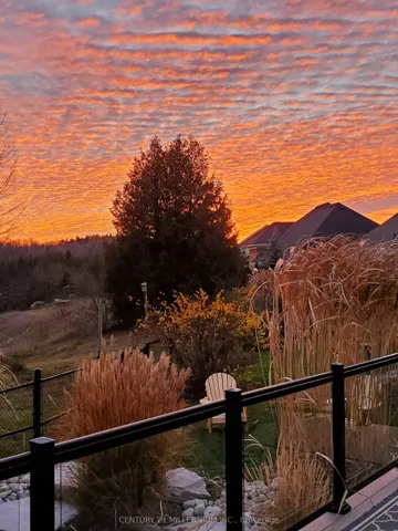 +"PublicRemarks": "Welcome to this beautifully maintained 2+2 bedroom Strathmore Model bungalow located in the highly sought-after Watermark Adult Lifestyle Community in Mono and set on a premium ravine lot with breathtaking views over Monora Park. Offering approx. 1,983 sq ft on the main level plus a builder-finished walkout basement, this home delivers nearly 3,200 sq ft of finished living space. The main floor features 9-ft ceilings, wide-plank white oak engineered hardwood (2023), and elegant living and dining spaces with crown moulding and upgraded finishes. The stunning great room boasts vaulted ceilings, floor-to-ceiling windows with transoms, and a striking custom chandelier, creating a warm, resort-inspired feel. Two custom floor-to-ceiling gas fireplaces add both style and comfort. The upgraded kitchen offers oak cabinetry, granite counters, custom backsplash, and a functional layout. The primary suite features scenic park views and a spa-like 5-piece ensuite, while a second bedroom/office and 3-piece bath complete the main level. The bright walkout basement includes two additional bedrooms, a full bath, and a spacious open-concept living area with direct backyard access. Professionally landscaped grounds, featured in Living Spaces magazine, showcase a private backyard oasis with a water feature, stonework, and an extended deck with glass railing and retractable awning overlooking the ravine. Residents enjoy access to a private community centre with fitness, theatre, party room, and more, all steps to trails and just minutes to Orangeville amenities, Hockley Valley Resort, and Island Lake Conservation Area."