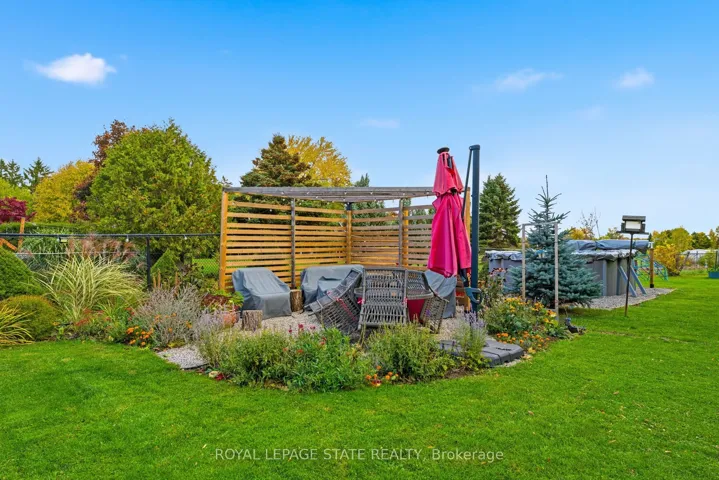 +"PublicRemarks": "Beautifully updated four-level side-split on just over half an acre at the top of Sydenham Road. Enjoy unobstructed farmland views, privacy, and quick access to Dundas, Waterdown, and the highway. This turnkey home has seen extensive updates since 2022, including most windows (2024), exterior doors (2024), upgraded appliances, smart home features, and recent work to the well and septic system. The bright, open main level offers engineered hardwood, large windows with sunset views, and an updated kitchen overlooking the family room with a gas fireplace and walkout to the yard. The upper level features three generous bedrooms with engineered flooring, a 3-piece bath, and a 4-piece ensuite. The lower level provides a spacious rec room, laundry/utility room, and excellent storage. Outside, enjoy a fully fenced, landscaped yard, mature trees, and an above-ground pool added in 2025-all on a wide, country-sized lot perfect for families and outdoor enthusiasts. Close to Dundas Peak, Webster's Falls, and scenic trails, this property offers country living with city convenience."