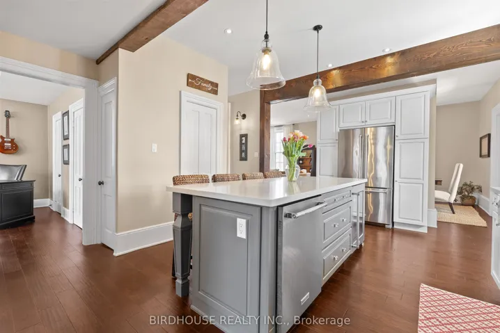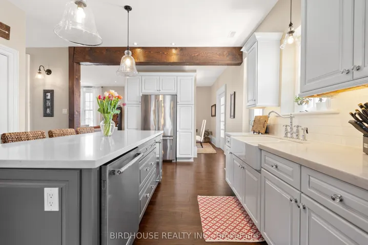 +"PublicRemarks": "STUNNING century home on Bond Street in Lindsay! A true master piece of OVER 3200+ Sq Ft and extensively renovated in 2017. The main floor features soaring ceilings, a formal office, separate dining area with gas fireplace & second living room. This central hall floor plan invites you into the stunning custom kitchen with quartz countertops, beverage fridge & gas stove overlooking the picturesque backyard. The second floor offers ultimate relaxation in the master retreat with its own sunroom and 5pc ensuite with soaker tub. Convenient second floor laundry and second bath are paired with two bedrooms. Bonus third floor lounge/games room (possible 4th bedroom) has its own 2pc bath and kitchenette. The basement provides plenty of storage, a workshop area & walk-out to the backyard. The backyard shines with extensive landscaping, armour stone, stamped concrete & in-ground heated swimming pool. Bonus natural gas BBQ line. The spacious driveway can fit an RV trailer. Updates include: Furnace (2022), AC (2022), Shingles (2010), Hot Water Tank (2016), Inground Pool (2023) & Hot Tub (2023)."