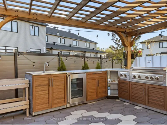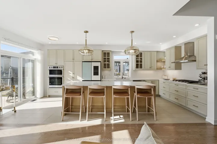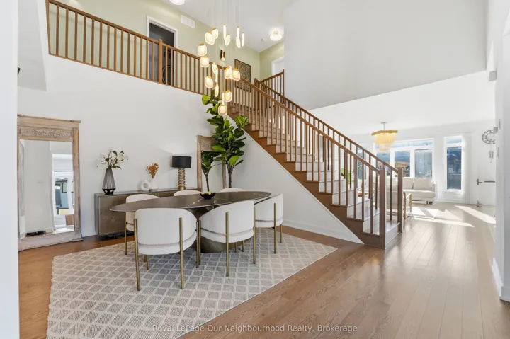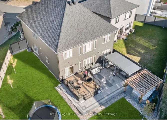 +"PublicRemarks": "Set on an extraordinary premium lot-131 ft deep and over 100 ft wide at the rear-this is easily one of the most upgraded and distinguished homes in the area, offering a rare combination of scale, privacy, and luxury living. Featuring the highly sought-after Lockport II model by Claridge Homes and professionally designed with inspiration from the renowned lottery CHEO Dream Home, this residence offers over 4,300 sq ft of finished living space with 9-ft ceilings on every level. The backyard is a true showpiece, with professionally landscaped grounds and a never-used New Age outdoor kitchen complete with a 36" natural gas grill, dual burners, and hot/cold water connections-perfect for elevated outdoor entertaining.Inside, the home showcases model-home quality finishes throughout. The main level offers a refined layout with formal living and dining rooms, a private den, and a library. A dramatic open-to-above dining area with statement lighting creates a striking focal point. The great room features a two-sided upgraded fireplace connecting seamlessly to the library-offering flexibility for a potential 6th bedroom with a full bath nearby, ideal for guests or multigenerational living. The chef-inspired Deslaurier kitchen in an elegant Angora finish is complemented by Samsung Bespoke appliances. Upstairs, 5 generously sized bedrooms all feature walk-in closets-a rare offering. The primary suite is a private retreat with a spa-like 5-piece ensuite, while bedrooms 2 and 3 share a Jack & Jill bath with dual vanities. The partially finished basement includes a custom bathroom with premium Baril fixtures. Option to complete basement adding an additional 800 sqft to the living space. Additional features include rough-ins for central vacuum and EV charging, along with a motion detection security system on all doors and windows. A truly exceptional home combining luxury design, thoughtful layout, and one of the most unique lots in the community."