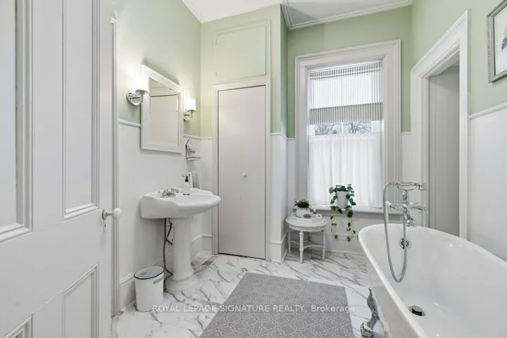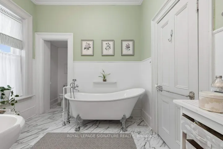 +"PublicRemarks": "Built in 1871 and quietly anchoring one of Napanee's most established streets, this stately triple brick Victorian offers five bedrooms and two baths and sits just a five-minute walk from the downtown core, riverfront boardwalk, parks, schools, hospital, and local boutiques. Set within historic Napanee, the home reflects an era when craftsmanship was intentional and architectural detail mattered.Original wood floors run throughout the light-filled principal rooms. A graceful arched doorway connects the family and sitting rooms, while two fireplaces, one marble and one oak, anchor the main living spaces. Ten-inch baseboards, extended height windows, solid double doors, and a striking bannister speak to a level of construction rarely replicated today. Main floor laundry offers everyday convenience without compromising character.Upstairs, the primary bedroom opens onto a private upper porch, a peaceful perch for evening sunsets. Generous porches extend the living space outdoors, offering multiple vantage points from which to enjoy the gardens and neighbourhood streetscape. The full, dry basement provides substantial storage and workshop space. A shared drive leads to the original two-storey carriage house, where a historic horse stall remains intact beneath lofted storage, a rare and increasingly uncommon survivor of the Victorian era. Meticulously maintained and thoughtfully preserved, this is an opportunity to steward a significant nineteenth-century home in one of Ontario's most charming small towns."