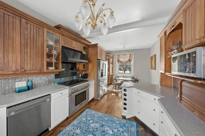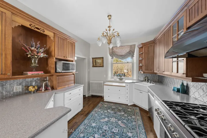 +"PublicRemarks": "OPEN HOUSE: Sun April 19, 2-4 PM. Welcome to the iconic William Thoburn House, a heritage-designated stone home built in 1888 and once home to one of Almonte's most prominent industrialists, set on nearly 1 acre in the heart of Almonte, known as the Hallmark movie capital of Ontario. Offering over 4,600 sq ft of finished living space across 3 lvls, this meticulously maintained & extensively restored 5 bed, 3.5 bath home blends timeless character w/ modern updates. Showcasing remarkable craftsmanship and distinctive architectural detail, enhanced for modern living while preserving its historic legacy. Highlights include most ceilings at 9'-11', rich wood floors, crown mouldings, decorative trim & restored stained glass window (2025). Most windows replaced in 2023. Grand principal rms include a bright living rm w/ gas FP, formal dining rm w/ large closet for dishware/linens, and stunning great rm w/ wood-burning FP & bay window. Eat-in kitchen features wood cabinetry, farmhouse sink, butcher block prep, SS appliances & walk-in pantry, plus sun-filled breakfast nook. Functional mudroom w/ heated floors, stone feature wall & full-height cabinetry w/ access to garage, backyard, kitchen & front entry. 2nd lvl offers spacious primary retreat w/ ensuite, plus 2 generous bdrms w/ architectural details, incl. one w/ WIC. Main bath w/ clawfoot tub, heated floors & dbl vanity. Office + well-appointed laundry rm. 3rd lvl loft ideal for playroom or additional lounge, along w/ 4th bdrm & private 5th bdrm w/ ensuite + large storage area. Oversized dbl garage (over 1,100 sq ft) w/ expansive room above, currently used as home gym, plus 2 driveways & elegant interlock approach. Private backyard retreat w/ deck, stone patio & gazebo, surrounded by mature hedges, curated gardens & professionally landscaped grounds. Walking distance to shops, restaurants, parks, schools & amenities. A rare opportunity to own a truly one-of-a-kind historic home! 24 hrs irrev. on all offers preferred."