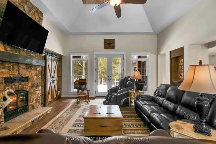 +"PublicRemarks": "A VERY SPECIAL PROPERTY. This highly customized home was carefully crafted by the home owners with no detail overlooked. High ceilings in the primary living spaces have interesting detail with slopes and contrasting material to draw the eye upward. This is a true 4 bedroom large footprint bungalow. The primary Bedroom and two others each has an Ensuite bathroom. This Kitchen is beautiful, detailed, and very much a chef's delight. The Great Room is just that! Grand in scale but warmed by the woodburning fireplace to keep the home cozy. Formal dining room at the front of the house has southfacing views. Screened porch is a must for a rural property to extend the seasons. Unspoiled lower level is wide open, to allow your imagination to roam as to how you might want to use this space with very high ceilings. Oversized 3 bay garage. Foundation is ICF for the best insulation a foundation can have. The site is 4.31 acres of woods with trails throughout. Location is very important - Mac Larens Landing residents have an opportunity to share in a private neighbourhood beach for only $50 per year. Less than 15 minutes to Arnprior with many amenities, 20 minutes to Kanata North. Treat your family to this welcoming community and a home with true lifestyle possibilities."