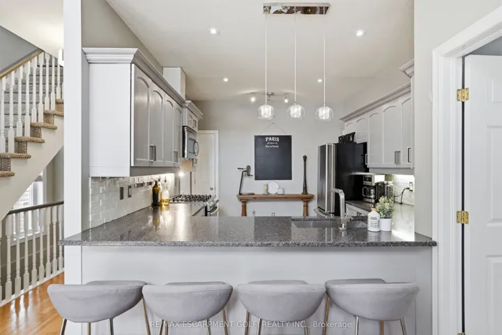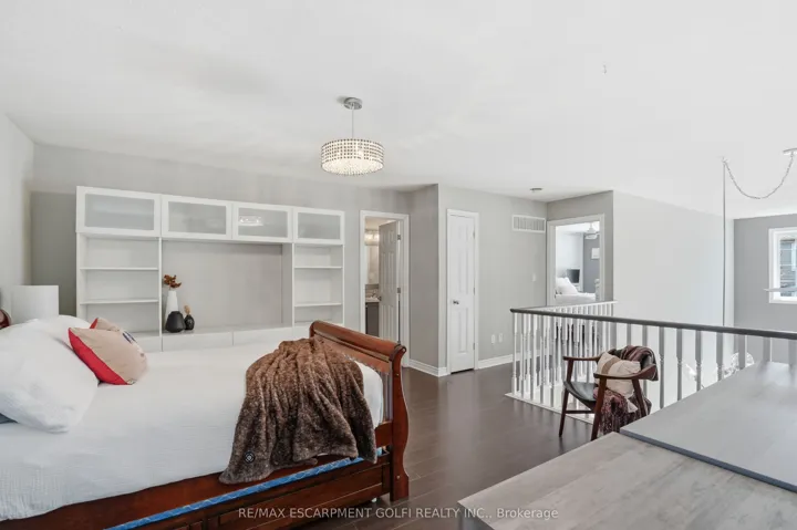 +"PublicRemarks": "Welcome to this beautifully maintained semi-detached home in one of Waterdown's most sought-after neighbourhoods, ideally located within walking distance to the Bruce Trail, community park with play structure, public library, and public transit with a direct route to the GO Train. Offering a rare and flexible layout, this home features two primary bedrooms-one conveniently located on the main floor and the other on the second level - both with ensuite privileges, making it ideal for multi-generational living, guests, or families seeking extra privacy. The bright and spacious main living area is filled with character, highlighted by cathedral ceilings in the living and dining rooms, creating an open and airy feel. Upstairs, a generous loft overlooks the family room and provides the perfect space for a home office, reading nook, or additional lounge area, just off the upper-level primary bedroom. The fully finished lower level offers exceptional in-law or nanny suite potential, complete with a full-sized kitchen, large bedroom with walk-in closet, 3-piece bathroom, comfortable living area, and large windows that bring in plenty of natural light. Step outside to enjoy the private backyard, featuring a deck, patio, free-standing shed, and gas line for your BBQ-perfect for relaxing or entertaining. Additional highlights include an electric car charger in the garage, recently replaced roof shingles, furnace, and water tank, offering peace of mind for years to come. A rare opportunity to own a versatile and thoughtfully updated home in a prime Waterdown location!"