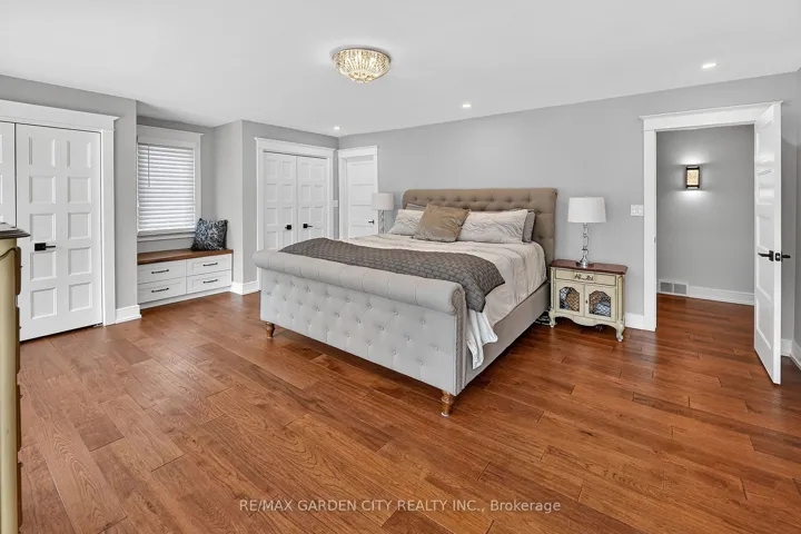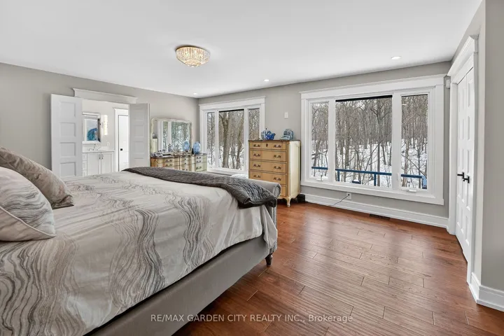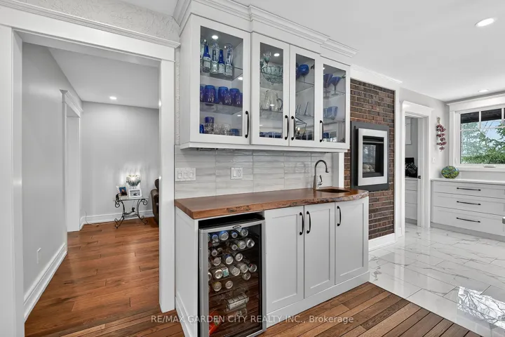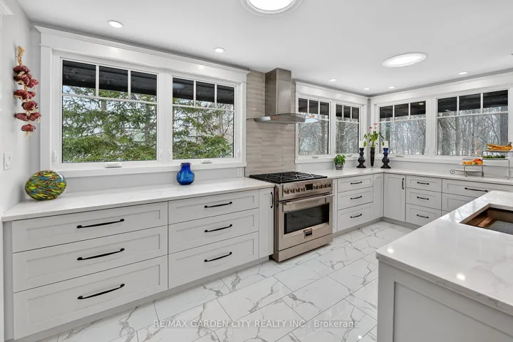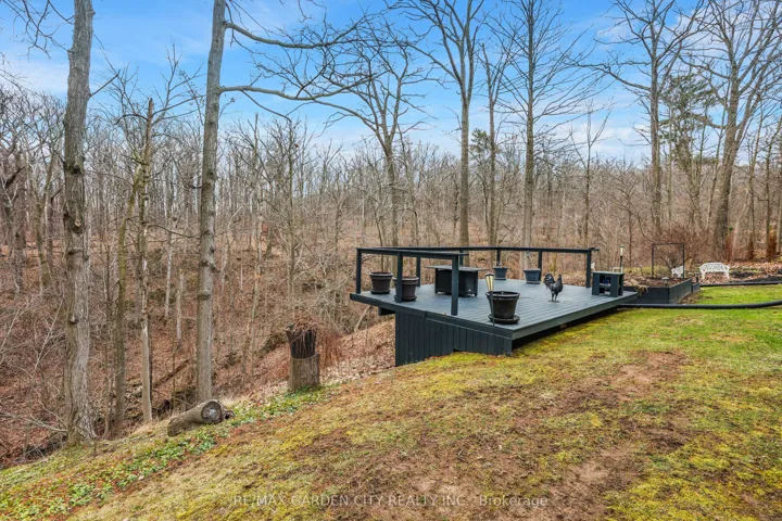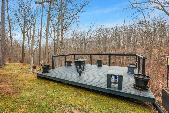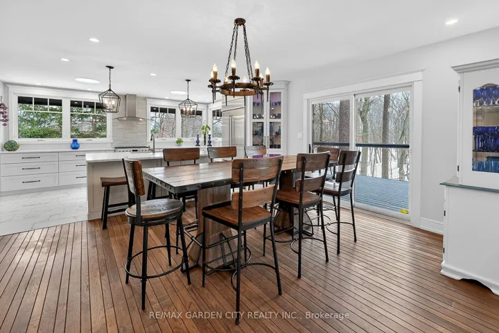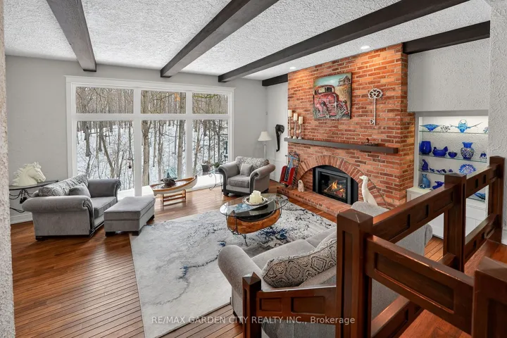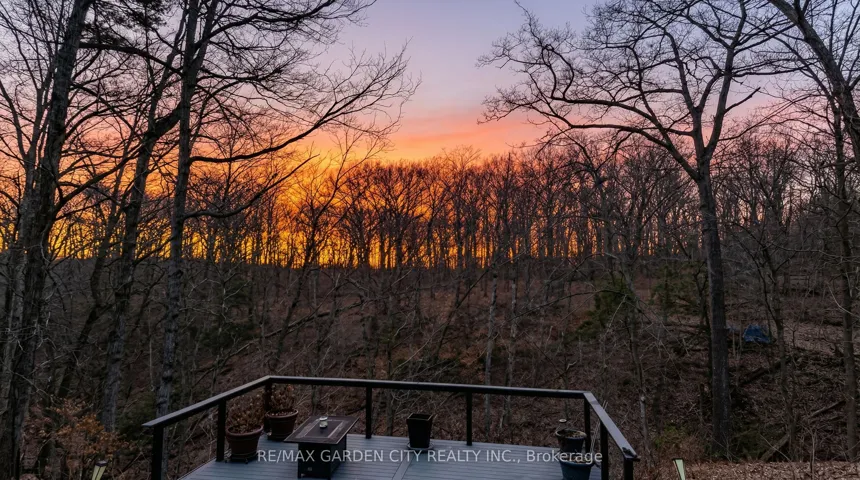 +"PublicRemarks": "Luxury Bungalow Set on over 2 acres of private property backing directly onto the breathtaking woodland views, a majestic stream and vibrantwildlife that animates the wilderness. Step inside this fully renovated ranch style bungalow which offers refined living surrounded by nature. Alarge front foyer welcomes you home with stunning views of the Niagara Escarpment. The expansive chef-inspired kitchen boasts of heatedfloors, a large island, granite countertops, a Fulgor Milano 6-burner gas stove and oven, a walk-in pantry with built-in second oven. Entertaineffortlessly by the gas fireplace or at the elegant wet bar accented with a black walnut counter and bar fridge. Step out to the upper deck tobarbecue with your herb garden at your side or simply take in the views. The sunken living room features floor-to-ceiling windows overlookingthe Escarpment and a second gas fireplace, creating a warm and inviting ambiance. The main-floor primary suite includes a luxurious 5-pieceensuite with heated floors and a walk-in closet, while two additional main-floor bedrooms each enjoy private 3-piece ensuites. Convenient main-floor laundry and garage access complete the level. The fully finished lower level offers an office, exercise room, second kitchen and laundryarea, bar and games room, fourth bedroom, and 3-piece bath, with a separate entrance - perfect for guests or multi-generational living. Mostlyall newer windows, doors, updated kitchen, 5 bathrooms, flooring throughout, eaves, decks, garage doors, and openers provide peace of mind.An exceptional opportunity combine luxury, natural beauty and in town convenience."