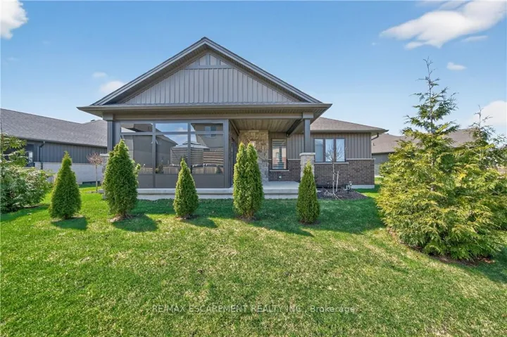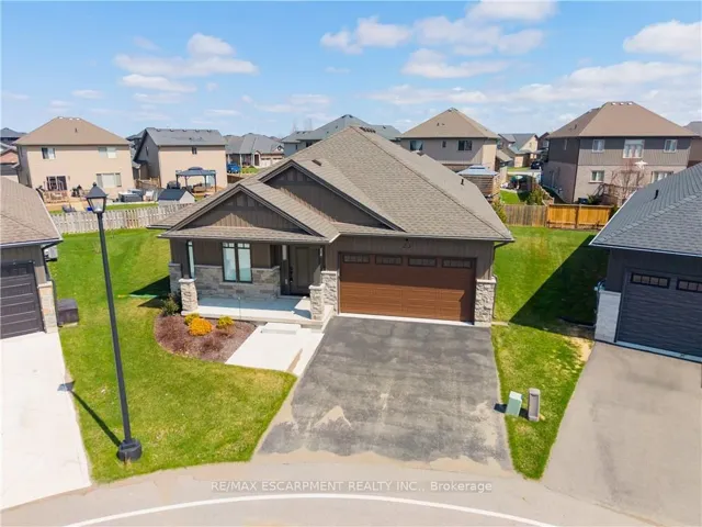 +"PublicRemarks": "Envision small town Ontario living in lavish luxury - look no further than this gorgeous 2022 custom built "Ed Robinson" bungalow situated at end of private court surrounded by similar maintained properties in Jarvis - Canada's officially recognized "Friendliest Town" located btw Hagersville, Port Dover/Lake Erie, Simcoe & Waterford - 45/50 min commute to Hamilton, Brantford & 403. Positioned handsomely on 0.18 ac pie-shaped lot introducing 1623sf of flawless main level living space plus 190sf professionally designed sunroom, 1623sf basement & 405sf 2-car garage. Oversized paved driveway leads to inviting covered verandah where front door enters to grand 10ft high foyer offering walk-in coat closet - continues past 4pc main bath flanked by 2 spacious bedrooms - on to stunning, open concept Great room showcasing 10ft coiffured beamed ceilings, n/g fireplace set in stone hearth & shiplap accent walls - segues to Chef's "Dream" kitchen sporting chic in-vogue white cabinetry, designer island, quartz countertops, tile back-splash & convenient side laundry room housing walk-in pantry & direct garage access. Adjacent dinette enjoys patio door walk-out to gorgeous sunroom incs wall to wall windows with access to 100sf covered outdoor entertainment porch. Beautiful north wing primary bedroom boasts beautiful 3pc en-suite & walk-in closet completing main floor plan. Stylish matte finished engineered hardwood flooring, 9ft ceilings, custom milled trim/baseboards & LED lighting compliment neutral décor with sophisticated flair. Spacious, unblemished lower level provides the ideal blank canvas to create your personally designed floor plan & finishes. Notable extras - motorized hi-end blinds, outdoor irrigation system, quality appliances, n/g furnace, A/C, HRV air exchange & landscaping. Reasonable $280 p/month road maintenance fee incs street lights, water/sewer charges & lawn cutting - snow clearing is Owner's responsibility. Lock Box for viewing ease. "Perfection Personified""