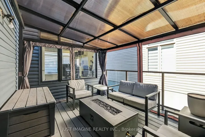 +"PublicRemarks": "PRICE JUST REDUCED $15k! TURN KEY TOTALLY RENOVATED HOME IN 2014 BACKING ONTO GREENSPACE IN GRAND COVE ESTATES. Situated in the land leased community of Grand Cove Estates. This is your perfect getaway that was totally renovated back to the studs in 2014. These renovations include plumbing, electrical, siding, metal roof, doors, windows, drywall, trim, flooring, kitchen, bathrooms, decks, landscaping and every other thing in the home! Tastefully redesigned allowing for wide open concept floorplan flowing in the bonus room overlooking an expansive green space. Kitchen offers lots of cabinetry with pass through window into bonus room making easy work of getting things to the BBQ. New countertops installed 2024. Bonus room overlooking greenspace allows for sliding door to stone patio and another sliding door to wraparound deck. Along with bay window for ample natural light creating a great space to kick back. Home offers two bedrooms and a fully updated four piece bathroom that allows for a tub with tiled surround. Front covered porch awning and back covered porch awning installed 2024. Both covered portions connected by 4 ft wide wrap around deck. All leading to the 16'x18' stone patio with privacy fences allowing for lots of privacy. BONUS: ALL CHATTELS EXCLUDING ARTWORK/PERSONAL ITEMS AS SEEN IN PERSON CAN BE INCLUDED IN ADDITION TO THE LISTED PURCHASE PRICE. This would include 2024 heavy duty patio furniture from Casual Industries, high end couches, chairs, dining set, island barstools, primary bed set, kayak, lawnmower & much more! Grand Cove has activities for everybody from the heated salt water pool, tennis courts, wood working shop, garden plots, lawn bowling, nature trails and so much more. Land lease fees of $915.58 per month includes access to all amenities and taxes. Only a short walk to downtown Grand Bend and the sandy beaches of Lake Huron with the world famous sunsets. Come view this home today and enjoy life in Grand Bend!"