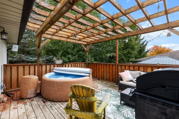 +"PublicRemarks": "** OPEN HOUSE SATURDAY MAY 2 - 12-2PM** Welcome to this beautifully maintained raised bungalow nestled on a quiet crescent just steps from local amenities and the scenic Elora Cataract Trail. This home exudes pride of ownership throughout with elegant crown molding accenting the main living spaces and a functional layout designed for family living. The main level offers three bedrooms (one bedroom conveniently features the second laundry) and a tastefully updated semi-ensuite featuring porcelain tile flooring and a granite topped vanity. You will appreciate the fresh neutral paint tones recently applied to the primary bedroom and the upper level washroom which provide a bright and modern feel. The principal rooms feature durable easy-care flooring and a walkout from the dining area to a large deck with an open pergola perfect for outdoor relaxation. The lower level presents an excellent opportunity for in-law or multigenerational living as it comes complete with a kitchenette, a spacious recreation room with a gas fireplace, and a separate laundry area. This level also features a ground-level walkout to the beautifully landscaped backyard which serves as a private summer oasis. You can enjoy endless summer days entertaining by the above-ground saltwater pool (with a sand filtration system) or relaxing on the flagstone patio beside the fire pit. The large fenced lot provides plenty of space for family enjoyment and outdoor activities. Additional highlights include an attached insulated single-car garage and a double-wide concrete driveway for ample parking. Numerous thoughtful updates have been completed recently including a new upper level electrical panel with a separate meter, a new heat pump HVAC system, and an owned tankless water heater all installed in 2024. This exceptional home offers the perfect blend of comfort and style in a family-friendly neighbourhood and represents a true gem in the heart of Elora."