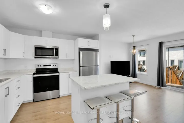 +"PublicRemarks": "Welcome to this lovely 3 bedroom 3 bath Etson Model end unit townhome in the heart of Bellamy Farms. Featuring 1750 sq ft of living space. The main floor offers an open concept design, large stylish kitchen with convenient island for prep work, 4 stainless steel appliances. Patio doors open onto deck for barbecuing and access to backyard. The split level second floor has two large bedrooms, main bath, convenient laundry room, bright and spacious primary bedroom with huge walk-in closet and 4 piece ensuite bathroom. Finished family room on the lower level with two large windows, high ceiling and spacious storage space. Within walking distance to Cattaraqui Trail, shops, schools and parks."