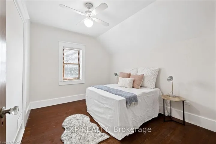 +"PublicRemarks": "Welcome to this charming brick two-storey home located in one of downtown Kitchener's most desirable neighbourhoods. This inviting single family home offers three bedrooms and two bathrooms, blending timeless character with comfortable living spaces. Inside, you'll find charming original details throughout, including classic hardware, wood flooring in select areas, and a beautiful clawfoot bathtub in the upper-level bathroom. The kitchen is complemented by a large pantry area just off the side, providing excellent additional storage and functionality. Step out onto the back balcony for a quiet retreat or enjoy your morning coffee in the private backyard surrounded by mature trees. The basement also features a versatile bonus room that could easily serve as a bedroom, home office, rec room, or play area depending on your needs. Additional highlights include a concrete driveway, metal roof, front porch and lovely curb appeal, all just steps from the vibrant shops, restaurants, and amenities that make downtown Kitchener so special. A rare opportunity to own a character-filled home in a truly walkable and highly sought after location."