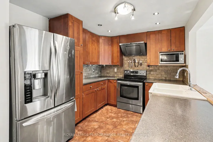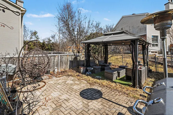 +"PublicRemarks": "Welcome to this spacious 2-storey townhome offering a functional layout and a number of practical updates. Hardwood flooring extends throughout both the main and second levels, adding warmth and continuity to the space. The main floor features a bright living room with a wood-burning fireplace and patio doors leading to a private, fully fenced backyard with patio. A separate dining area provides a defined space for everyday meals or entertaining. The updated kitchen offers stainless steel appliances, backsplash, ample cabinetry and counter space, along with pot lighting. A generous foyer includes a closet and convenient access to the garage. Upstairs, the primary bedroom is well-sized and includes an updated 3-piece ensuite with an oversized shower. Two additional bedrooms offer good space and flexibility. The main 5-piece bathroom has also been updated and features double sinks. The finished basement provides additional living space suitable for a family room, home office, or recreation area. Recent updates include wood fence slats (2018), permanent outdoor LED lighting (2023), furnace and smart thermostat (2024), washer and dryer (2024), CCTV system (2024) and air conditioner (2025).Located within walking distance to Joe Jamieson Park, public transit, and Place d'Orléans Shopping Centre, this home offers convenience in an established neighbourhood."