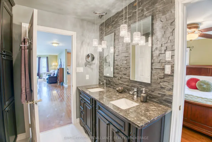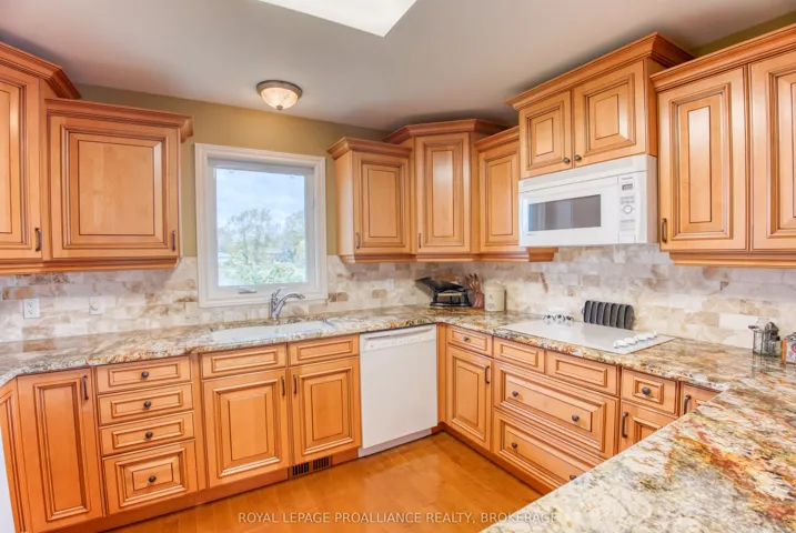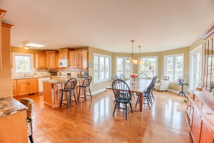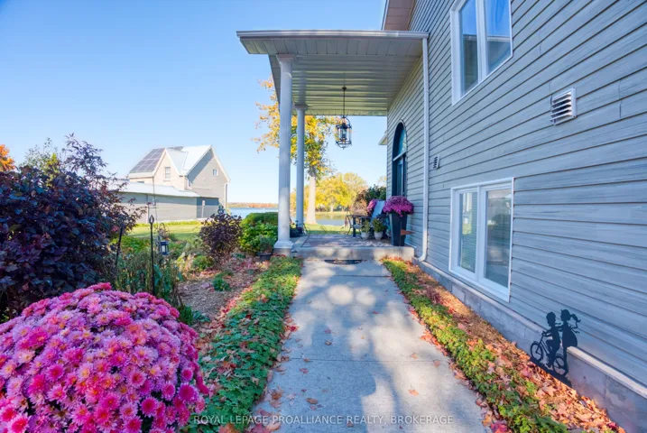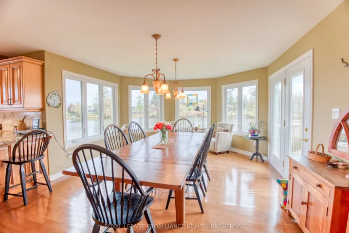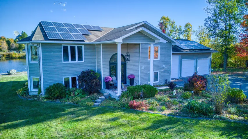 +"PublicRemarks": "Waterfront living at its finest, just minutes from Kingston! This beautifully maintained 2006 raised bungalow on Colonel By Lake offers 2 sides of shoreline, breathtaking views, a walkout lower level to patio. Bright open principal rooms, hardwood floors, updated baths, main-floor laundry, and an eat-in kitchen with walkout to the deck make everyday living effortless. The finished lower level offers exceptional space for guests, family, or entertaining, complete with a built-in bar and stunning water views. Comfort and efficiency are key highlights of this home. The propane-fired heating system uses heated glycol to provide both warm, forced-air heating throughout the home and radiant in-floor heat in the basement, creating cozy, even warmth year-round. The hot water tank is owned and supported by both propane and solar. Annual 2025 utility costs were approximately $1,835.50 for hydro and $2,854.57 for propane , while transferable solar panels bring in about $4,300 a year. Outside, enjoy your private space, pergola, 3-bay garage, and beautifully landscaped lot with circular drive. A true year-round waterfront lifestyle property with easy access to 401 and all amenities."