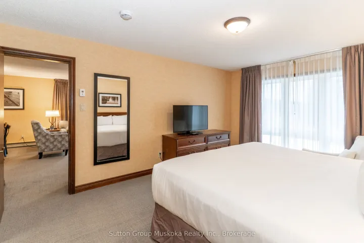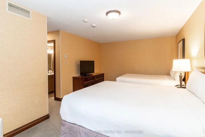+"PublicRemarks": "Immaculate two-bedroom, two-bath, condominium located on the grounds of Deerhurst Resort - Muskoka's premier resort! This unit includes new carpeting throughout the unit, new washer and dryer and hot water tank, all were installed April 2026! The unit offers 1075 square feet of living space all on one level. This unit is in the highly desired Greens complex, a short walk from the main pavilion and beach. Enjoy a sunny afternoon on your private deck overlooking the grounds. The unit offers a large living and dining area, a full kitchen, a natural gas fireplace in the living room, an owner's storage locker in the unit, laundry, and more. Both bedrooms are oversized and include their own ensuite. The unit is currently on the rental program with the resort, keep it on the rental program and enjoy the revenue or keep for your personal use. Revenue paid to the owner for 2025 was $35,097. With ownership, you have access to the facilities at the resort along with discounts at the resort. Deerhurst offers two golf courses, tennis, pools, beach, trails, restaurants, and much more. Hydro $1,500-$1,600 annually. Condo fee is $869.76 plus HST ($120.87) plus Cogeco ($60) for a total of $1050.63 per month. HST on condo fees should be recoverable while unit is on the rental program. The deck on the unit will be replaced in the spring of 2027. The deck will include a glass railing, no special assessment, cost will be paid from the reserve fund. Enjoy the resort lifestyle along with an great investment! Live, vacation and invest in Canada!"