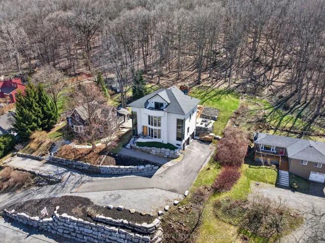 +"PublicRemarks": "ESCARPMENT LUXURY MASTERPIECE WITH UNOBSTRUCTED LAKE AND TORONTO SKYLINE VIEWS. Perched high along the Grimsby escarpment, this is more than a home, it is a rare lifestyle reserved for those who expect more. With sweeping, unobstructed views across Lake Ontario to the Toronto skyline, every moment here feels elevated, private, and exceptional. Inside, soaring ceilings and dramatic walls of glass flood the home with natural light, creating a seamless connection between refined living and the landscape beyond. The chef-inspired kitchen anchors the main level with an oversized island and walk-in pantry, designed for effortless entertaining and everyday comfort. A private in-home elevator connects all three levels, delivering convenience without compromise. The upper floors unfold into a true retreat, featuring a third-level sanctuary with a private balcony where morning coffee and sunset views become part of your daily routine. Step outside to a tiered backyard set against the escarpment, offering rare privacy and a peaceful natural backdrop. The swim spa creates the perfect setting for relaxing evenings and summer days spent at home. Located minutes from downtown Grimsby, you will enjoy boutique shops, dining, parks, and top-rated schools, with quick highway access to Hamilton, Burlington, and the GTA. This is where nature, luxury, and convenience come together. A rare opportunity to experience escarpment living at its highest level."