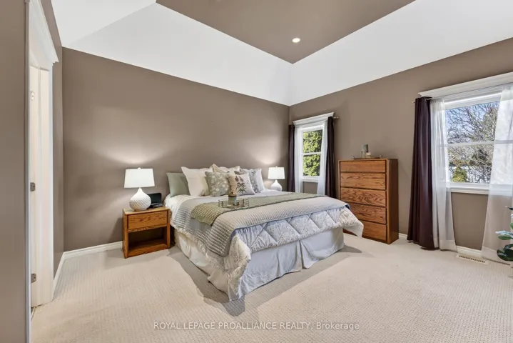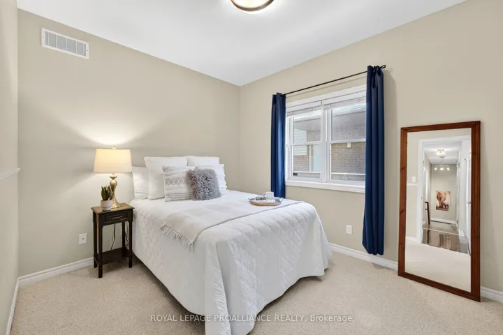+"PublicRemarks": "Welcome to this meticulously maintained all-brick bungalow nestled in one of Belleville's most desirable, established neighbourhoods. This home radiates pride of ownership, blending sophisticated design with functional family living. Step through the front door into a large, inviting foyer featuring durable ceramic tile. The expansive living room serves as a true centrepiece, boasting a stylish tray ceiling and gleaming hardwood floors. The modern kitchen is a chef's dream, featuring a gas stove, breakfast bar island, and ceiling-height cabinetry for maximum storage. The dining area offers a seamless walk-out to a private, tiered backyard deck equipped with a gas BBQ hookup for effortless summer entertaining. The primary suite is a true sanctuary, also featuring a tray ceiling. It is complemented by a 4pc ensuite bathroom with double sinks, and a large glass shower with a luxurious rain shower head. Two additional well-appointed bedrooms are located on the main level - one featuring a dramatic vaulted ceiling - along with a second 4pc bathroom. The main floor is completed by a laundry area and inside entry to an insulated double garage with a 220v outlet. The lower level offers a massive L-shaped family room anchored by a cozy electric fireplace and plush broadloom. This level also includes a generous fourth bedroom and a dedicated theatre room, complete with in-wall speakers, professional wiring, and a wet bar for the ultimate movie night! A third 4pc bath, large utility room, and a 2019 HVAC update offer total convenience and peace of mind. Outside, the property is equally impressive, featuring a two-tiered deck with a pergola and beautifully landscaped retaining walls showcasing mature perennial gardens. Located just north of the 401, you are minutes from the Quinte Mall, schools and major routes, with a beautiful park and walking trails right across the road. This home is truly move-in ready and waiting for its next chapter."