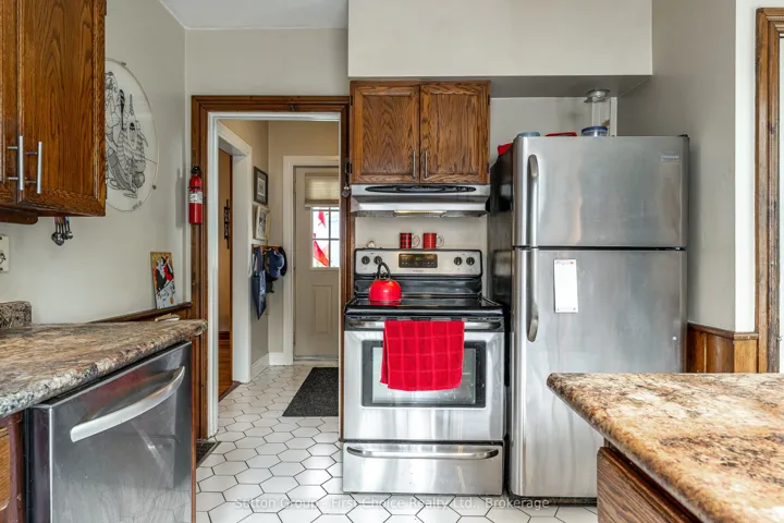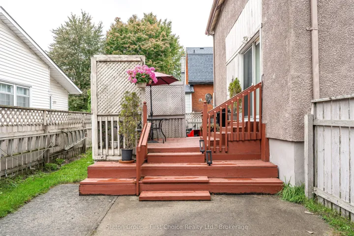 +"PublicRemarks": "Grab your golf bag and stroll to the Municipal Golf course. Set up a road hockey game on the quiet street. This solid 3 bedroom home is a must see. Enjoy BBQ on the deck off of the kitchen with ceramic tile leading to gracious living room dining room with cozy wood surface and high ceilings. Upstairs 3 bedrooms with 4 piece bath. Large paved driveway with room for 4 cars or 2 cars and RV with external power outlets. New roof in 2017 decorative shutters and flower box at front window, beside dining room table, Newer windows and hardwood floors, private fenced in area behind and beside house with concrete patio furniture with a 12 x 15 pad. Entry to deck from sliding patio doors from kitchen. Safe and enclosed for small children or pets. Full security privacy screening, perfect for barbecue area and future hot tub. Front entry has a poured concrete sidewalk with floral urns for spring autumn flowers. Oak Hanover custom kitchen with oak chair rail, updated and extended in 2015 with new countertop and island with seating, plus pantry with storage, features double patio door includes five stainless steel appliances fridge, stove, range hood, dishwasher and microwave lower level has fully finished family room, RUUD high efficiency furnace, 100 amp service 2 baths. This house with bronze plaque, first occupied by Joseph Eastwood a WW1 vet, who worked at the Grand Trunk Railway and managed the greenhouse there. Nice family home!"