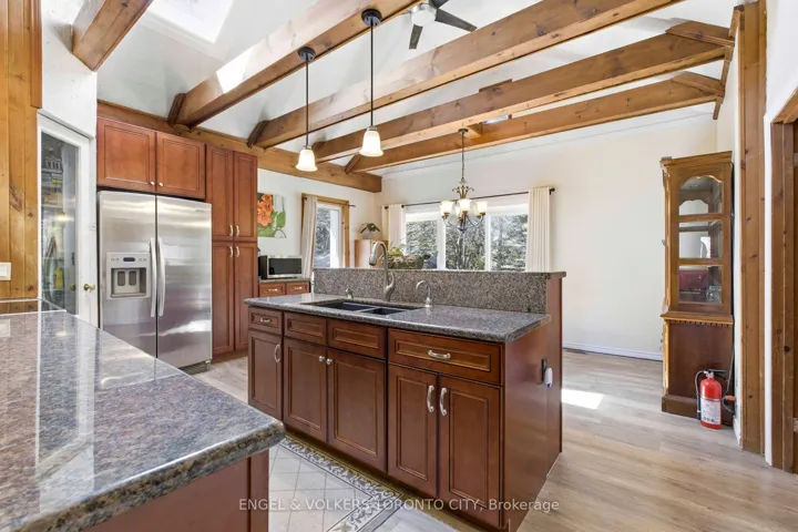 +"PublicRemarks": "A rare opportunity to own two self-contained residences within one property, set on approximately 4.3 acres in desirable Rural Erin with agricultural/residential zoning. This two-storey home offers flexibility for multigenerational living, income potential, or lifestyle use.The main residence features 3 bedrooms, including a primary suite with 5-piece ensuite and walk-in closet, a large eat-in kitchen with stainless steel appliances and expansive windows overlooking the grounds, and an open-concept living and dining area anchored by a wood stove. Functional access between living spaces is supported by a main-floor laundry connection to the secondary residence.The bungalow-style in-law suite includes 2 spacious bedrooms, a 5-piece bath, its own eat-in kitchen, and a bright living room with fireplace and walk-out to a private deck, providing autonomy and privacy. Outdoors, the property expands the lifestyle offering with a detached insulated studio and lofted shed, both with electricity, a spring-fed pond, and a 24-foot round solar-heated pool. With ample parking and over four acres to utilize, the setting supports hobby farming, recreation, or future visioning. Property size approximately 3,000-3,500 sq ft with an unfinished basement and generous lot frontage. A distinctive rural holding suited for buyers seeking space, versatility, and long-term potential."