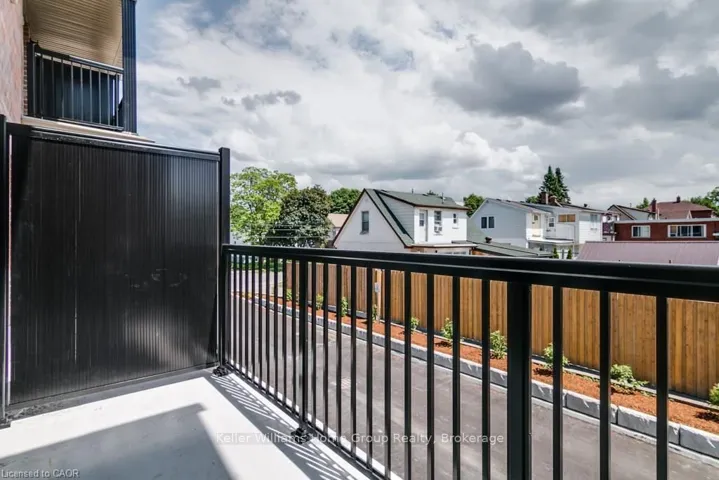 +"PublicRemarks": "Welcome to this beautiful 2 bedroom, 1.5 bathroom stacked townhouse with water resistant Vinyl plank Laminate flooring, located on a desirable , quiet and family friendly neighbourhood, close to Hwy 8 and Homer Watson Pkwy, walking distance to school, park and shopping. This is a 3 storey building fully upgarded, main floor is an open concept Kitchen, Living / Dinning room, a gorgeous White kitchen with ample cabinet space and quartz counter top and a centre island leading to a balcony. On this floor you will find a 2 pc washroom, utility room with an owned Tankless Water heater system to maximize the heat efficiency. Top floor boasts a sizeable pricipal room with his and her closts, opens to another balcony and a 2nd bedroom with double closet and a 4 piece Washroon, in suite laundry and a linen closet.This unit is almost carpet free on both levels, except on the stairs for your safety."