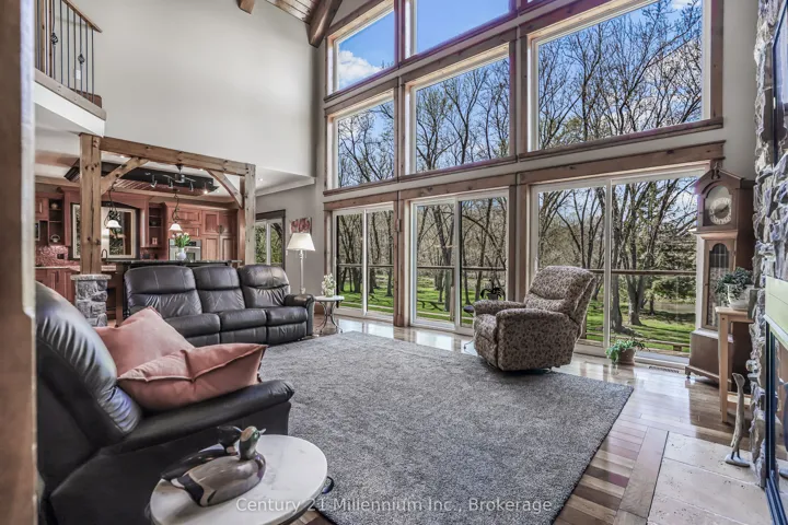 +"PublicRemarks": "Welcome to 142 Mill St., a stunning luxury estate set on approximately 2 acres along the Sauble River. A grand circular concrete drive leads to this serene property where timeless elegance meets modern comfort. The post & beam covered wraparound porch and gazebo create the perfect setting for morning coffee or peaceful evenings, showcasing beautiful river views and seamless indoor-outdoor living. Watch for otter, beaver and muskrat as well as bald eagle, egret and blue heron, fox and turtles along your private shoreline. Inside, a dramatic two-storey foyer with limestone flooring opens to a bright living room with floor-to-ceiling windows reaching to the 23' post and beam cathedral ceiling, rich cherry hardwood, and a striking stone gas fireplace. The gourmet cherry kitchen features granite countertops and sinks, a centre island, built-in appliances, and a breakfast credenza, plus a multi-tiered deck ideal for entertaining against the river backdrop. A formal dining room is perfect for gatherings, while a private main-floor office enjoys inspiring water views. The oversized triple-car garage with in-floor radiant heat (a mechanic's dream) connects to a spacious mudroom. Upstairs, the primary suite offers a sitting area and spa-inspired ensuite with a freestanding tub overlooking the river, glass-and-tile shower, double vanities, and private water closet. Two additional bedrooms with double closets share a full bath, plus second-floor laundry. A third-level bonus room offers many options! The Lower level is an entertainer's dream with a large family room, dry bar, media room, infrared sauna, 5th bedroom, cold room and walk-out to the stamped concrete patio. The property extends across the river with water rights. The 4,000 sq.ft. detached "Bee House" includes a workshop heated with natural gas, playroom, and plenty of flexible storage. A welcoming community, ideally located between Owen Sound, the Lake Huron shoreline, and Bruce Power in the middle of everywhere!"