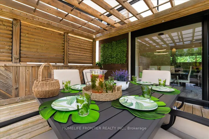 +"ExteriorFeatures": "Awnings,Deck,Landscape Lighting,Landscaped,Lawn Sprinkler System,Privacy"