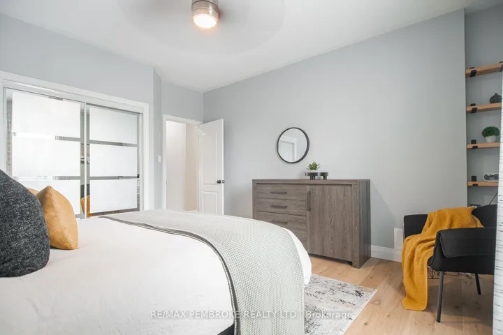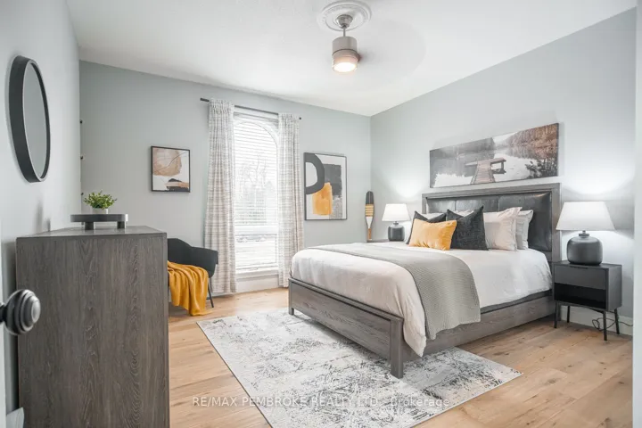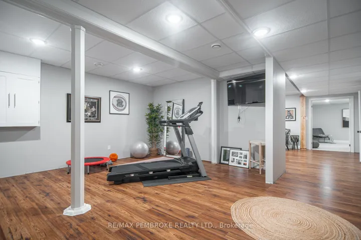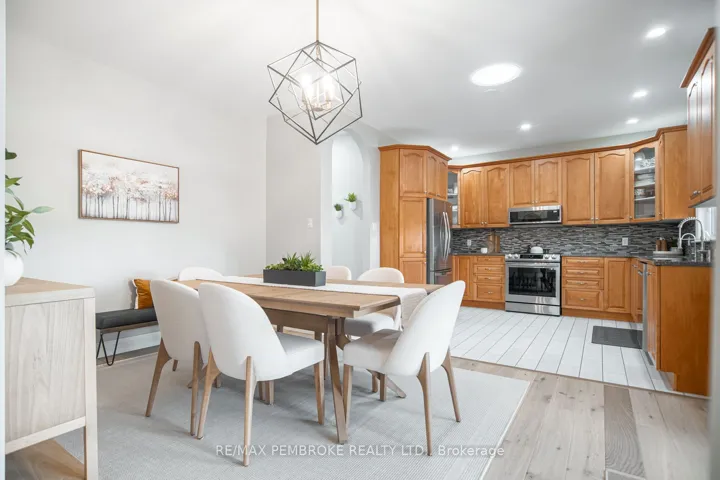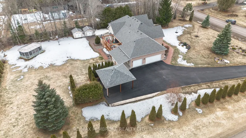 +"PublicRemarks": "Stunning executive 3+1 bedroom, 3 bathroom home set in a prestigious neighbourhood ideally located between Petawawa and Pembroke, offering breathtaking views of the Ottawa River and deeded water access-perfect for kayaking, paddleboarding, and seadooing. This stately, meticulously maintained home boasts impressive high ceilings. The spectacular living room offers a gas fireplace and vaulted ceiling that creates a warm and inviting focal point. The bright open kitchen features remote-controlled blinds (also in living room) quartz counters, all appliances and flows seamlessly into the main living space-ideal for both everyday living and entertaining.The spacious primary suite offers a private retreat complete with a walk through closet and ensuite bath. The main bathroom has been tastefully updated and includes a jet tub/shower combo.The finished lower level expands your living space with a fourth bedroom, additional bathroom, large family room, theatre room and a dedicated gym area-perfect for growing families, guests, or multi-functional living. Car enthusiasts and hobbyists will appreciate the attached insulated triple car garage with hot and cold water, along with a convenient double carport. Step outside to a large back deck or hang out in the gazebo, perfect for relaxing or hosting, surrounded by a beautifully maintained yard featuring a patio and full irrigation system installed in 2024.This immaculate home has been lovingly cared for and extensively updated, including shingles on the house (2021), carport shingles (2025), water softener (2022), hot water tank (2022), duct cleaning (2022), well pump (2024), gas furnace (2024), and updated main floor window panes (2022), along with new lighting and fresh paint throughout. A rare opportunity to own a turn-key home with upscale features, exceptional maintenance, and deeded access to the Ottawa River in one of the area's most sought-after communities."