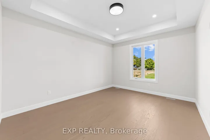 +"PublicRemarks": "Welcome to this beautifully crafted 2-bed, 2-bath bungalow where elegant details and smart design meet. From the inviting covered front porch, step into a grand foyer with 9-foot ceilings and a striking wainscoted accent wall along the staircase a hint of the quality that flows throughout. At the front of the home, the secondary bedroom enjoys natural light and a private 4-piece bath complete with a built-in niche and its own linen closet. Tucked quietly at the back, the primary suite is a true retreat featuring a tray ceiling, a custom walk-in closet with wood shelving, and a spa-inspired 3-piece ensuite. Here you'll find a zero-entry shower, custom glass door and panel with brushed-nickel trim, built-in niches, and matching brushed-nickel framed mirrors. The heart of the home is an open-concept living space with engineered hardwood floors, 9-foot ceilings, and 8-foot doors for an airy feel. A gas fireplace anchors the living room, while the upgraded lighting and pot lights add warmth and style. The kitchen and dining area flow seamlessly to a covered back deck, perfect for relaxing or entertaining. Practical touches abound: a mudroom off the garage offers built-in cabinetry, a stainless-steel clothes rod, a bench with hooks, and a full laundry set-up with tile flooring. Bathrooms and the laundry room are finished with elegant tile for durability and easy care. The double car garage is insulated including the garage doors themselves, keeping you cool in the summer and warm in the winter. This new build by Branch Homes blends craftsmanship and comfort, ready to welcome you home. Schedule a private viewing today and experience bungalow living at its finest."