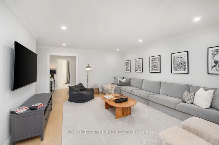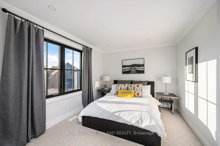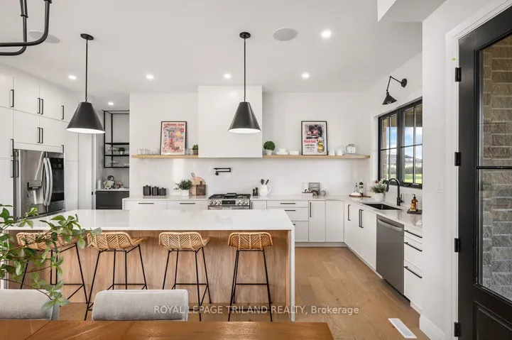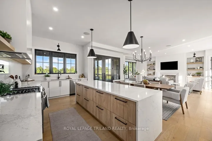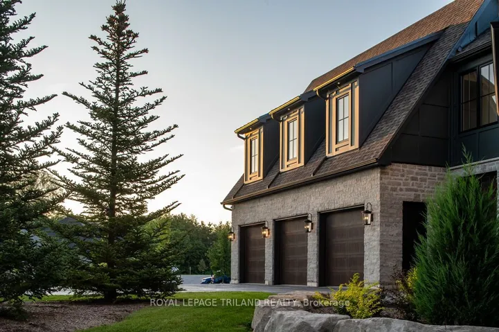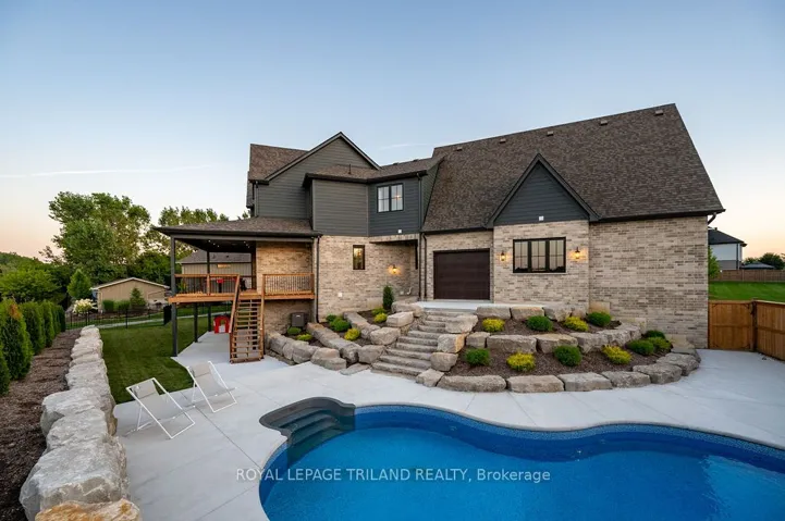 +"PublicRemarks": "Welcome to Bella Lago Estates, Komoka's most exclusive and sought after neighbourhood. This exceptional property offers a rare opportunity for the discerning buyer to acquire a home defined by aesthetic perfection, timeless design, and a superior lifestyle. With just under 6,000 sq ft of luxurious living space, this residence truly offers something for everyone that's looking for superior design and elegance. A majestic exterior features a classic stone facade, a vast stamped concrete driveway, and hand picked pine trees, ensuring a timeless arrival. Step inside to soaring ceilings and abundant natural light that flows over a beautiful herringbone brick pattern floor. The open concept layout includes a great room and dining space perfect for entertaining. Enjoy seamless indoor/outdoor living with access to a covered deck offering tranquil views of the pond, ideal for your morning coffee or evening retreat. The executive den exudes sophistication with exposed wood beams and a built-in library. The second floor is dedicated to family comfort, featuring four spacious bedrooms, three full bathrooms, a convenient laundry room, and a bonus family room perfect for media or gaming. The fully finished walkout lower level is an entertainer's dream, complete with an additional bedroom, a full bathroom, a large rec room, and a dedicated gym space. The lower level walks out directly to your fully fenced backyard oasis featuring a sparkling pool. The yard is beautifully landscaped with armour stone and low-maintenance trees and shrubs. Access to the oversized heated triple car garage is made easy via slate stone steps from the backyard. Komoka is a fantastic community offering great schools, the YMCA community centre, grocery shopping, walking trails, and quick access to Highway 402. There are fine Restaurants just steps away. Opportunities to purchase within this exclusive enclave of just 29 homes in the private residence are rare, don't miss your chance."