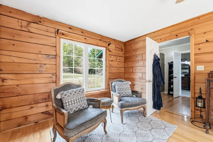 +"PublicRemarks": "A rare offering in Rural Brighton, this 38.5-acre property offers privacy, charm, and wide-open space just minutes from town. Surrounded by mature trees, picturesque views, and a spring-fed pond on the property, it delivers the peaceful country lifestyle so many buyers are searching for. Enjoy quiet mornings by the water, summer evenings on the spacious deck with built-in BBQ, and relaxing moments on the welcoming porch. Whether you are looking for a full-time residence, a private retreat, or a property with hobby farm potential, this property offers exceptional flexibility. Inside, the bright, carpet-free home features 3 bedrooms, including a main floor primary suite with walkout access to the deck for easy everyday living. The walkout basement adds even more versatility, with potential for a rec room, in-law suite, or added living space to suit your needs. The timeless log exterior and durable metal roof add character and lasting appeal, while the detached two-car garage with a gas furnace and ample parking make rural living practical and convenient year-round. Set in a peaceful location just minutes to Brighton's amenities, this is a rare opportunity to own a special piece of Northumberland County."