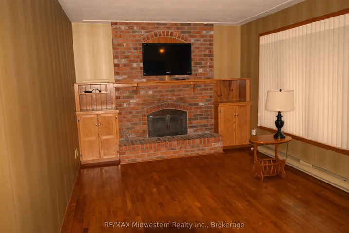 +"PublicRemarks": "Good 3 bedroom bricked bungalow with attached garage on quiet street. Home features eat-in kitchen with patio door to rear deck, diningroom, livingroom with wood fireplace, sunroom and 1 baths. Downstairs features large l-shaped rec room, laundry, coldroom and lots of storage. Large 66 x 233' landscaped and treed lot."