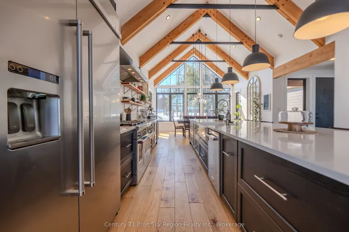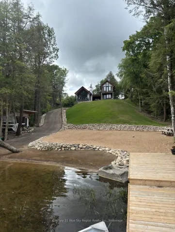 +"PublicRemarks": "Custom Waterfront Luxury on 1 Acre - 5 Bed, 3 Bath. Experience exceptional craftsmanship and year round lakeside living in this custom built 5 bedroom, 3 bath waterfront home set on a beautifully landscaped 1 acre lot. Designed for comfort, efficiency, and unforgettable entertaining, this property blends rustic elegance with modern performance. Step into a breathtaking great room featuring soaring cathedral ceilings framed by striking Douglas Fir beams. A Napoleon wood burning factory fireplace with a large 50-pound firebox and zero gravity glass and screen creates a dramatic focal point and a warm, inviting atmosphere. North Star windows-backed by a lifetime warranty-flood the home with natural light and frame serene lake views. This home is equipped with central air, propane heat, and a wood boiler, offering efficient and flexible climate control year round. An ICF foundation ensures superior insulation and long term durability. A Generalink hook up adds peace of mind and convenience. Enjoy a gentle, sandy entrance into the lake-perfect for swimming, wading, and family fun. The private dock offers 5 ft of depth at the end, ideal for boating and water toys. A covered 16' x 16' concrete patio extends your living space outdoors, while the driveway continues all the way to the water, allowing you to launch your boat with ease. Relax under the stars in your brand new saltwater hot tub, positioned to take in the tranquil waterfront setting. A large heated garage provides ample room for vehicles, tools, recreational gear, or a workshop-perfect for hobbyists or those needing extra space. Situated on a year round maintained road, this property offers the rare combination of privacy, convenience, and four season accessibility."