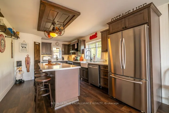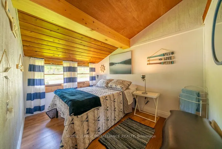 +"PublicRemarks": "Discover an exceptional 2,663 sq. ft. recreational property nestled on the stunning shores of Bull Lake. This retreat boasts 100 feet of highly-sough after, south-facing waterfront, perfect for lakeside summers filled with swimming, boating and fishing. It's perfect for multi-generational families or hosting guests, as it includes two separate spaces: a fully-renovated main house and private 3 bedroom 4 season cottage. The beautifully appointed home has gone through extensive renovation with many upgraded features. The main house includes an attached single car garage, currently used as a games room, with access to the main house and its design worthy kitchen, dining room and living room with beautiful views of the lake and propane fireplace and walkout to stunning garden decks. There is a bathroom and laundry room on main level as well. Upstairs you will enter the large recreation/media room with surround sound, the guest bedroom, out fitted with double bunk-beds, followed by the primary bedroom overlooking Bull Lake with incredible en-suite and Juliette balcony to take your breath away! Returning to the main level you will walk through the garage//games room and enter the 4 season cottage, with 3 bedrooms, family room with wood-stove and bathroom. These two separate spaces provide privacy, yet not secluded living spaces for family, friends and visiting guests. With endless opportunities for swimming, boating, fishing and exploring access to three pristine lakes, Buck Lake, Bull Lake & Horseshoe Lake, right at your doorstep, adventure awaits in this idyllic setting. Enjoy sunny days on the deck or host memorable gatherings in the expansive outdoor spaces surrounded by nature's beauty, with close proximity to amenities and endless opportunities for adventure, this property offers exceptional value for those seeking a harmonious blend of privacy and the joys of lake life!"