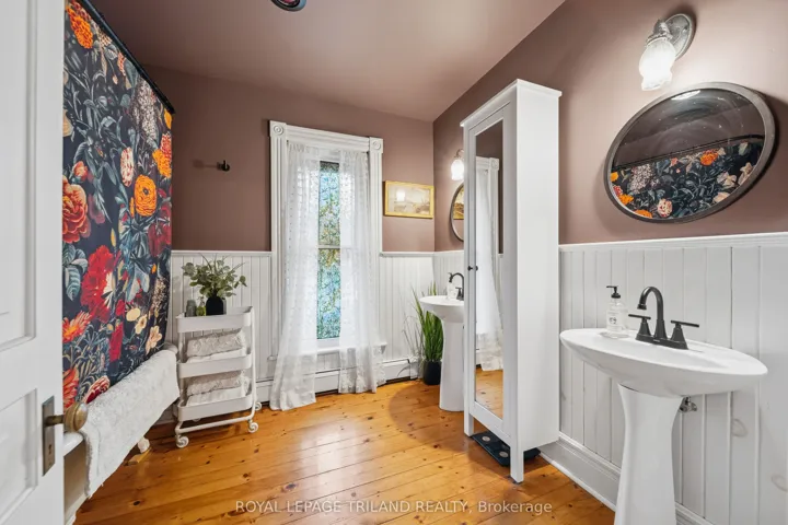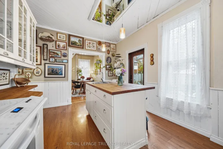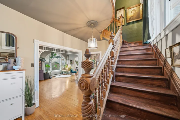 +"PublicRemarks": "This beautifully restored Victorian home offers 2,130 sq. ft. of finished space filled with warmth, character, and original craftsmanship. This 4 bedroom, 3 bathroom home, designed and built by J.Z Long, a founding member of the Ontario Association of Architects, in 1892, is located near the desirable Court House district and blends historic charm with thoughtful updates for modern living. From the moment you arrive, the restored front door, salvaged from the original public library, sets the tone for the home's artistry. Inside, soak in the exquisite hardwood flooring, original woodworking, cathedral ceilings, and a grand staircase with restored spindles. The home is illuminated by large windows (2025), arched details and original stained glass windows. The spacious main floor features a wood-burning fireplace (WETT inspected upon purchase)with a stunning mantle, a formal dining room, a convenient powder room and a bright kitchen overlooking the backyard, perfect for entertaining and everyday comfort. Upstairs are four generous-sized bedrooms and a full bathroom with double vanities. Function of the full basement allows a second TV room, a workout space, or even storage space. Stepping outside, you can enjoy your coffee under the front covered porch or on the back deck with the fully fenced yard. This home is ideal for relaxing and enjoying the beauty of the home while being spacious enough to host gatherings. Every corner of this home showcases craftsmanship that honours the home's Victorian roots while offering modern functionality."