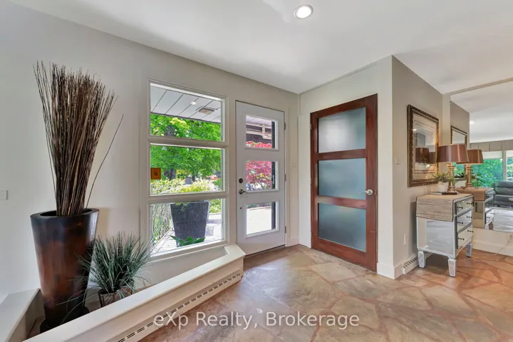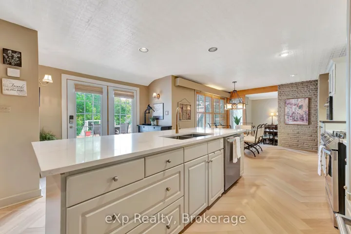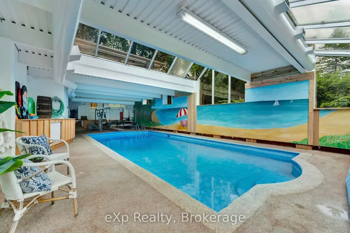 +"PublicRemarks": "***OPEN HOUSE SAT 2-4pm***SPRAWLING BUNGALOW WITH INDOOR POOL*** Nestled in one of Guelph's most desirable neighbourhoods and set on a beautifully landscaped 120 x 162 ft lot, this impressive 5-bedroom, 4-bath home offers a spacious layout designed for both everyday living and exceptional entertaining. A large, welcoming front porch sets the tone as you enter this charming home. At the heart of the main level is a chef-inspired kitchen featuring a large island, pantry, and high-end appliances, seamlessly flowing into a sunken dining area and an inviting living room with fireplace, while an additional family room opens to an expansive patio for effortless indoor-outdoor living. The main level offers 4 bedrooms, including a primary suite with walk-in closet and ensuite, complete with French doors leading to a private hot tub-your own personal retreat-along with a tucked-away laundry area for added convenience. The walk-out lower level further extends the living space with a spacious rec room, additional bedroom with wet bar and large bright windows, full bath, and direct pool access-ideal for entertaining or multi-generational living. Enjoy year-round relaxation with your own indoor pool and sauna, all within the comfort of home. Complete with a 3-car (2+1) garage and extended driveway, this home delivers an exceptional blend of space, comfort, and resort-style living in a truly beautiful setting. Call your REALTOR today for your own private viewing. ("
