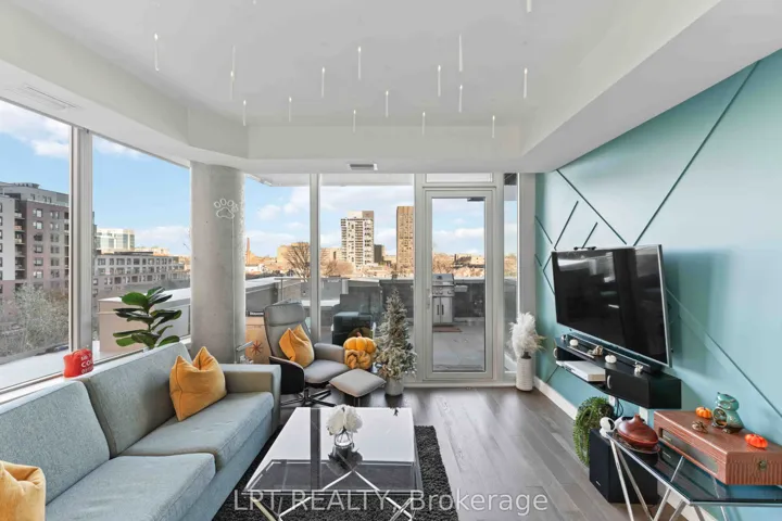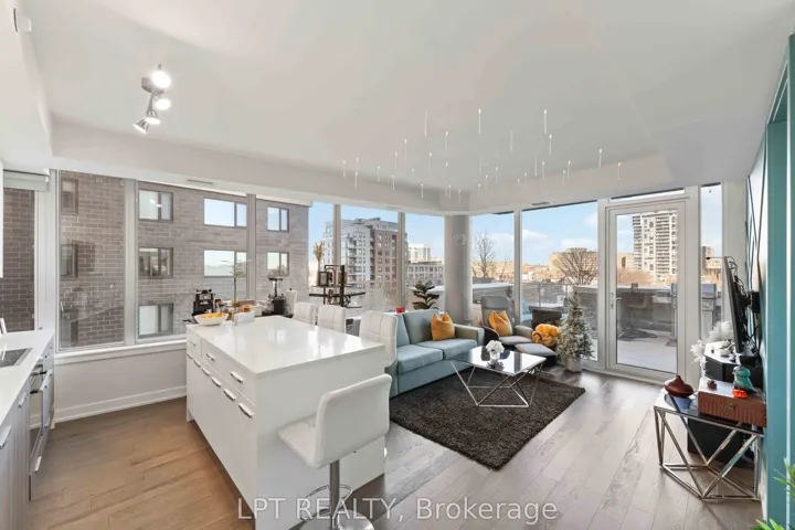 +"PublicRemarks": "Perfectly positioned for seamless indoor-outdoor living, this exceptional residence showcases breathtaking panoramic views of Dows Lake, Preston Street, and the Ottawa skyline. Located just steps away, literally one minute, from the Dows Lake LRT Station, this home offers unmatched convenience in the heart of the city, moments from the future Civic Hospital. Enjoy a true walkable lifestyle with everyday essentials and local favourites right outside your door, including a 24/7 convenience store, coffee shop, pharmacy, women's hair salon, and an upcoming dental clinic. You are also just a short stroll to Starbucks, scenic biking trails, and the vibrant Dows Lake waterfront and courts. Inside, the suite is meticulously maintained and thoughtfully upgraded. Expansive wall-to-wall windows flood the space with natural light, complemented by custom blinds and premium finishes throughout. The designer kitchen features quartz countertops, Euro-style appliances, and clean modern lines, flowing effortlessly into the living space where a sleek electric fireplace adds warmth and ambiance. The spacious primary bedroom offers direct access to a rare and stunning private terrace, creating a true indoor-outdoor retreat. It also includes a generous walk-in closet and a spa-inspired ensuite with an oversized glass shower. A second full bathroom, equally well-appointed with a walk-in shower, is ideal for guests or family. Additional highlights include upgraded flooring, pot lighting, and full in-suite laundry. Step outside your unit to enjoy convenient access to the building's BBQ terrace and hot tub, located just steps away on the same floor. Residents also enjoy access to premium building amenities, including a swimming pool, theatre room, and party room, all within a secure, concierge-serviced building with a full fitness centre. This suite also includes a parking space with EV charging, ideally situated near the secure entrance, completing a truly elevated urban living experience."