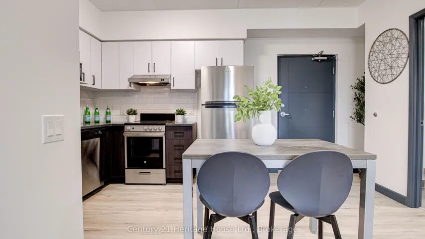 +"PublicRemarks": "Welcome to Unit 305 at 298 Hemlock Street - modern living in the heart of Waterloo's university district. Steps from Wilfrid Laurier University, the University of Waterloo, transit, dining, and everyday amenities, this location offers unbeatable convenience in a vibrant community. This 681 sq. ft. one-bedroom plus dining suite with two full bathrooms delivers a smart, functional layout designed for comfort and flexibility. The spacious bedroom is complemented by a dedicated dining area, ideal for entertaining, studying, or working from home, while the second bathroom adds rare convenience and privacy. The contemporary kitchen features granite countertops, full wood cabinetry, and sleek LED lighting, flowing seamlessly into the open-concept living space. Floor-to-ceiling windows flood the unit with natural light, creating a bright and airy atmosphere throughout. Water, heat, and internet included. Partially furnished. Efficient, modern, and exceptionally located - Unit 305 offers elevated urban living in one of Waterloo's most sought-after buildings."
