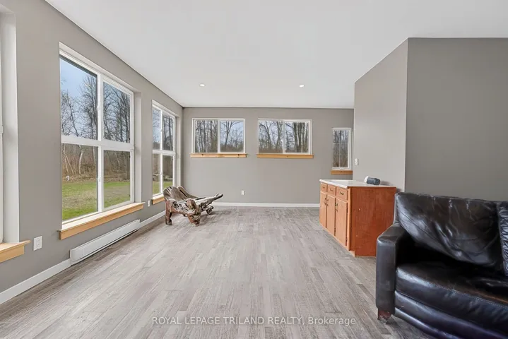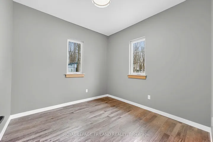 +"PublicRemarks": "BRAND NEW BUILD - Spacious 2 bedroom bungalow backing onto the woods. Very private lot at the end of the street. Large foyer. Stunning living room with floor to ceiling windows and French doors leading to the back yard...great for nature lovers! Kitchen with lots of white cabinets and granite countertops. Nice dining area including rustic island. Painted in neutral colours. Two bedrooms, 4-piece bathroom, laundry room and storage room complete the tour. LVP flooring and 9' ceilings throughout. Built with 2X6 construction. Engineered roof trusses. Interior walls and attic are insulated. 200amp breakers. HWT owned. Baseboard heat. Water source is Sandpoint. Land lease is $2000/year. Band fees are $3200/year. No conventional mortgages available for native land. Buyers must have current police checks and proof of insurance before closing. Cottage/home cannot be rented out. Septic tank inspection already completed to meet band requirements. Only a few blocks away from the beautiful, sandy Ipperwash Beach."